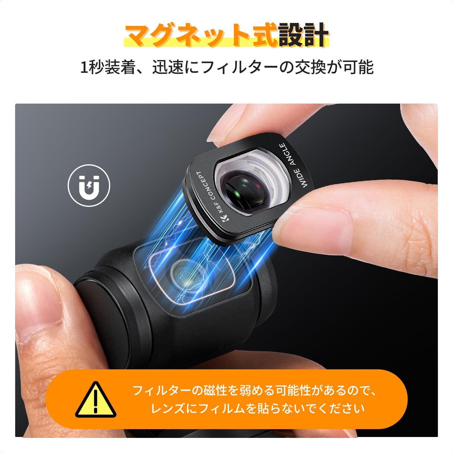 K&F Concept DJI OSMO Pocket 3用磁気式フィルター 広角レンズ 広角120°撮影範囲 倍率0.72X 広角フィルター 磁気吸着 装着便利 AGC光学ガラス 28層ナノコーティング 防水防汚
