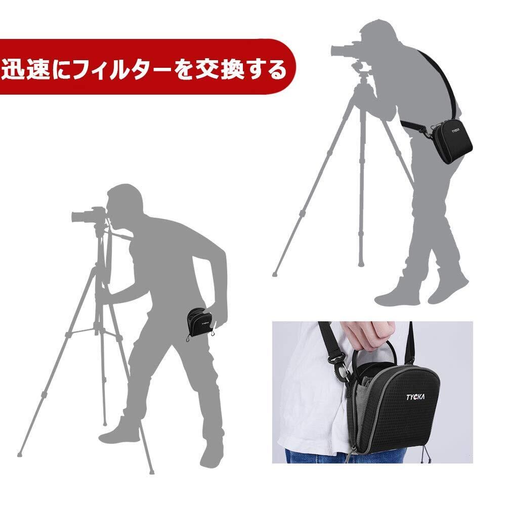 Tycka フィルターポッチ 防水 防塵 フィルターケース 取り外し可能な内側仕切り フィルター収納バッグ ストラップ付き 86mmまでの円型/角型フィルターに適用 TK025