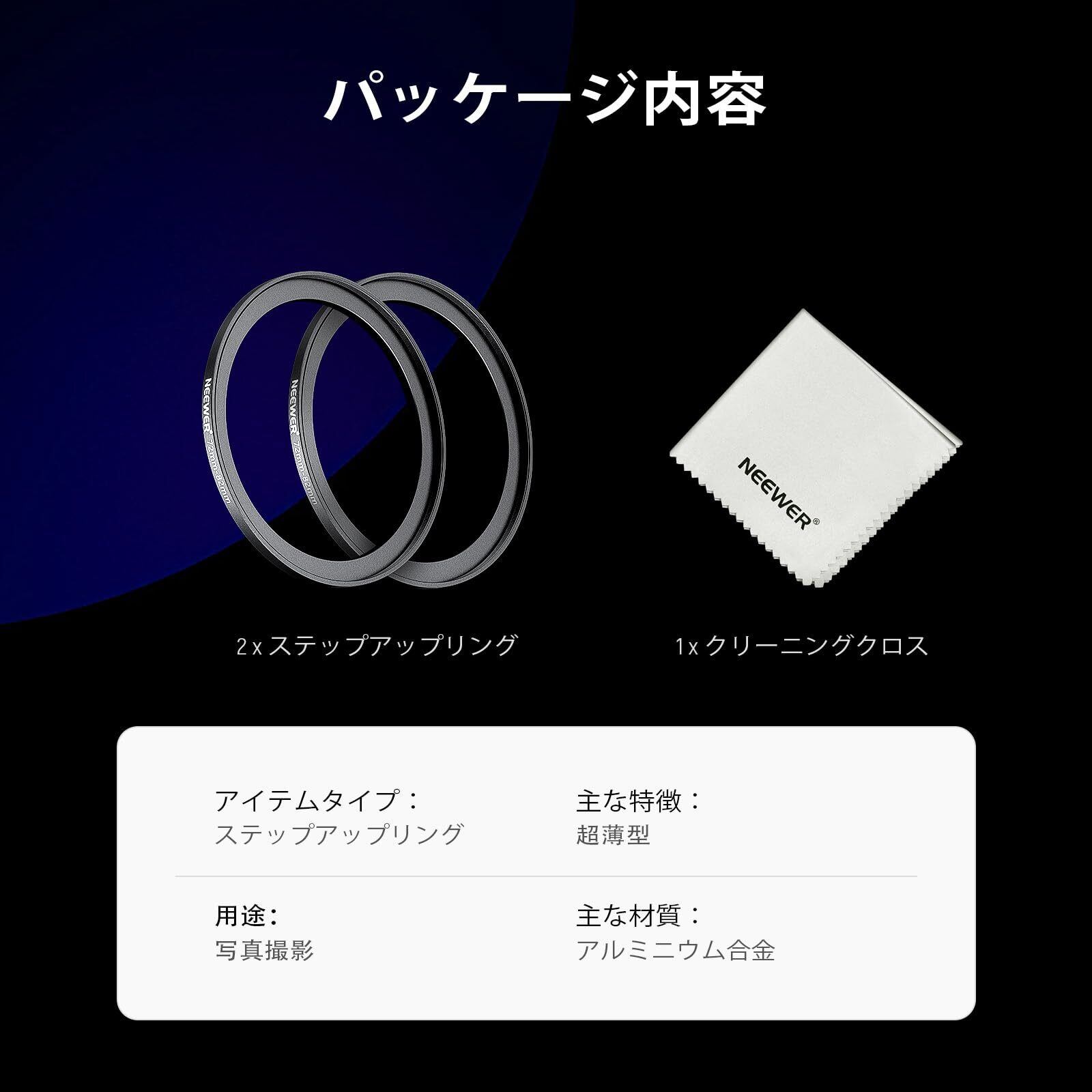 NEEWER ステップアップリング 72-82mm 2点セット 超薄型 アルミ合金製 アダプターリング フィルター径変換アダプター 1枚クリーニングクロス付属