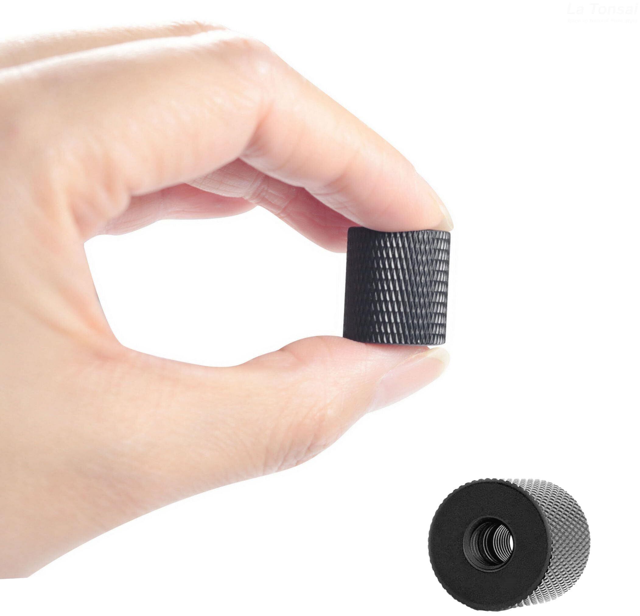 【製品概要】ネジ径: 1/4"-20(メスーメス)、 サイズ:全長18mm; 直径φ16㎜ 材質:アルミ合金製 重量:8.5g/個 カラー:ベーシック ブラック(黒・無地) セット内容:1/4メスから1/4メス 変換アダプター x4個