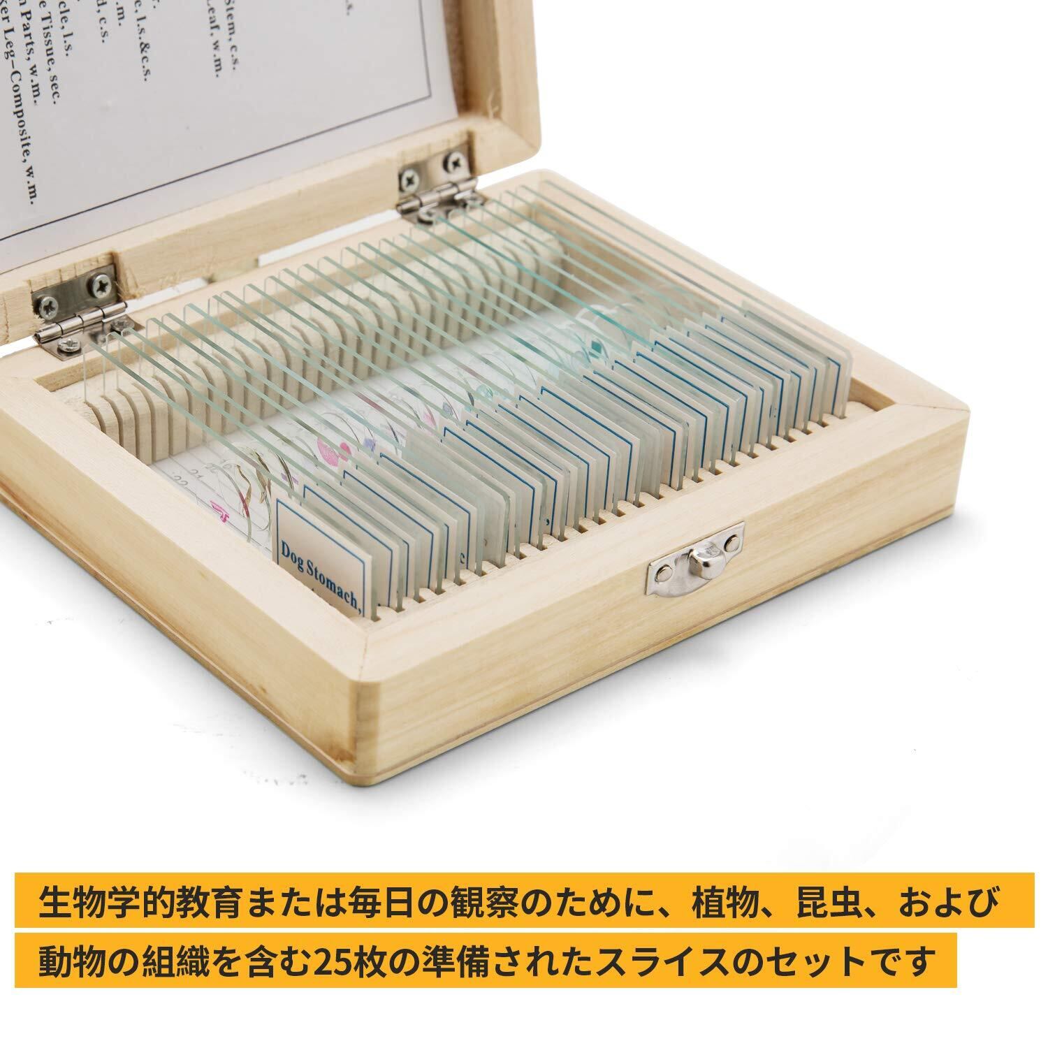 SWIFT PS25 25ピース 顕微鏡用スライド 木製ボックス付き スライドセット 学習実験セット 基礎生物学教育用スライド 動物 植物 昆虫 組織サンプル