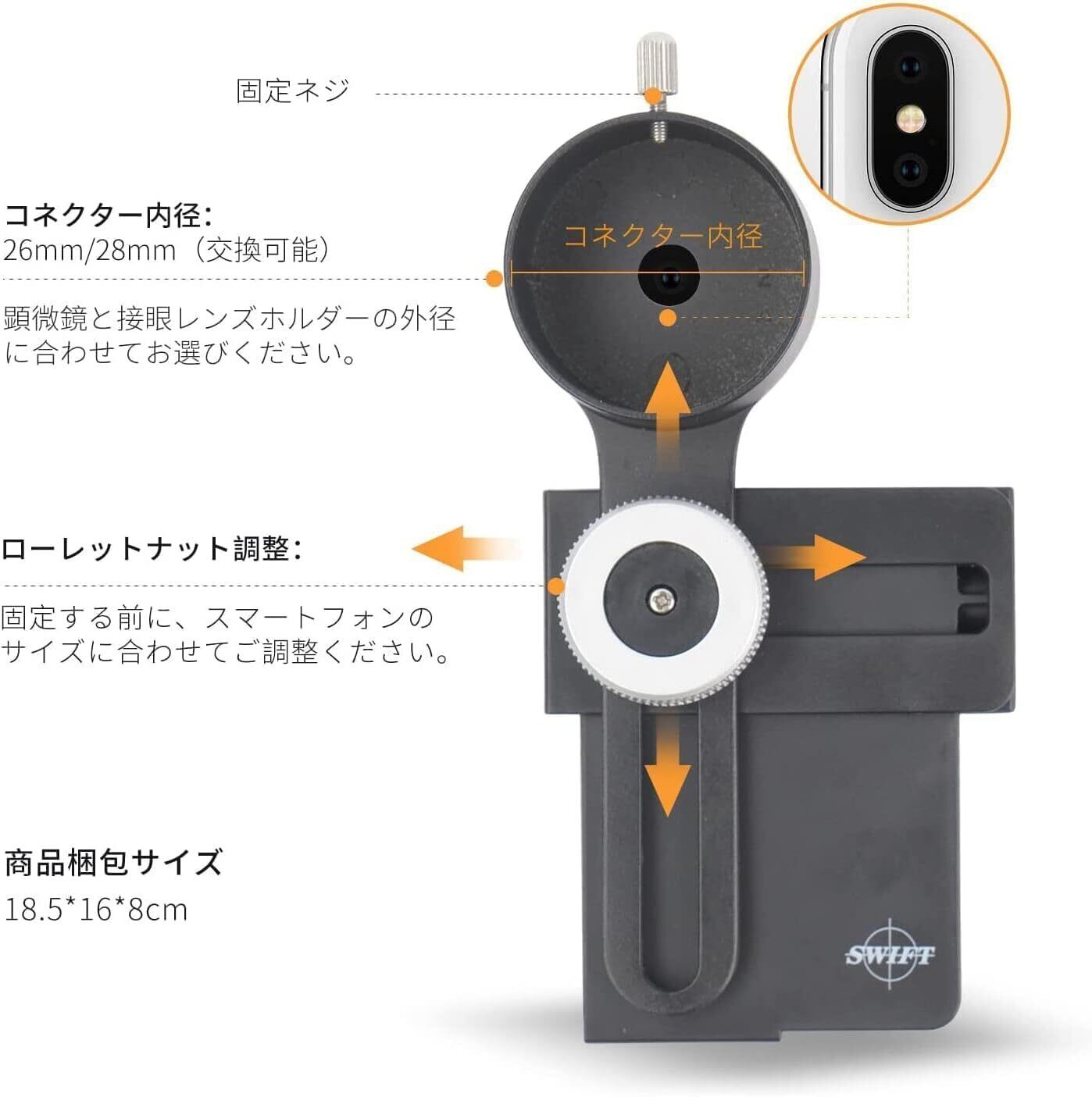 SWIFT 顕微鏡用スマートフォンアダプター、接眼レンズ径 26mm と 28mm に適合、顕微鏡アクセサリー SPA-E2628