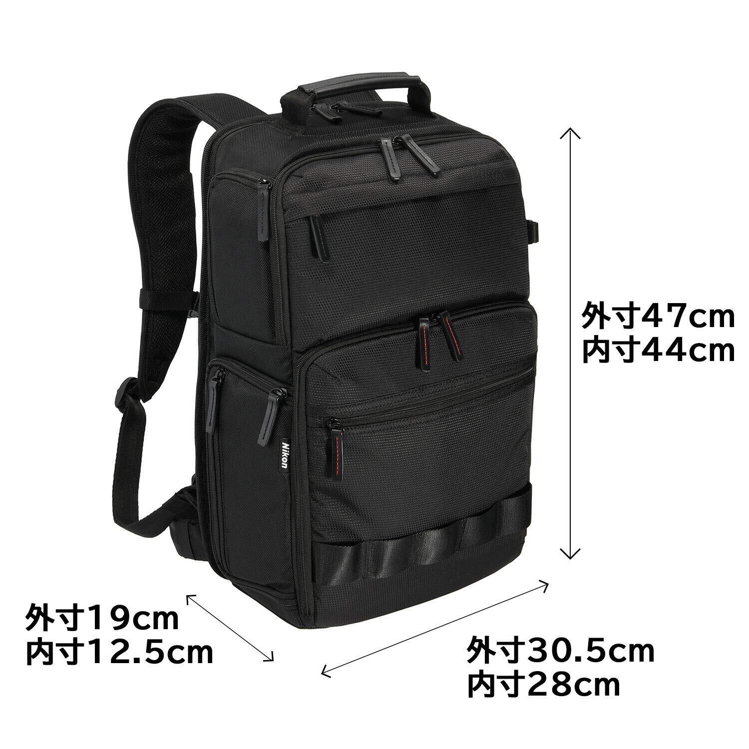 黒を基調としたシンプルなデザインにカメラバッグならではの多様な機能性を兼ね備えたカメラリュックです。