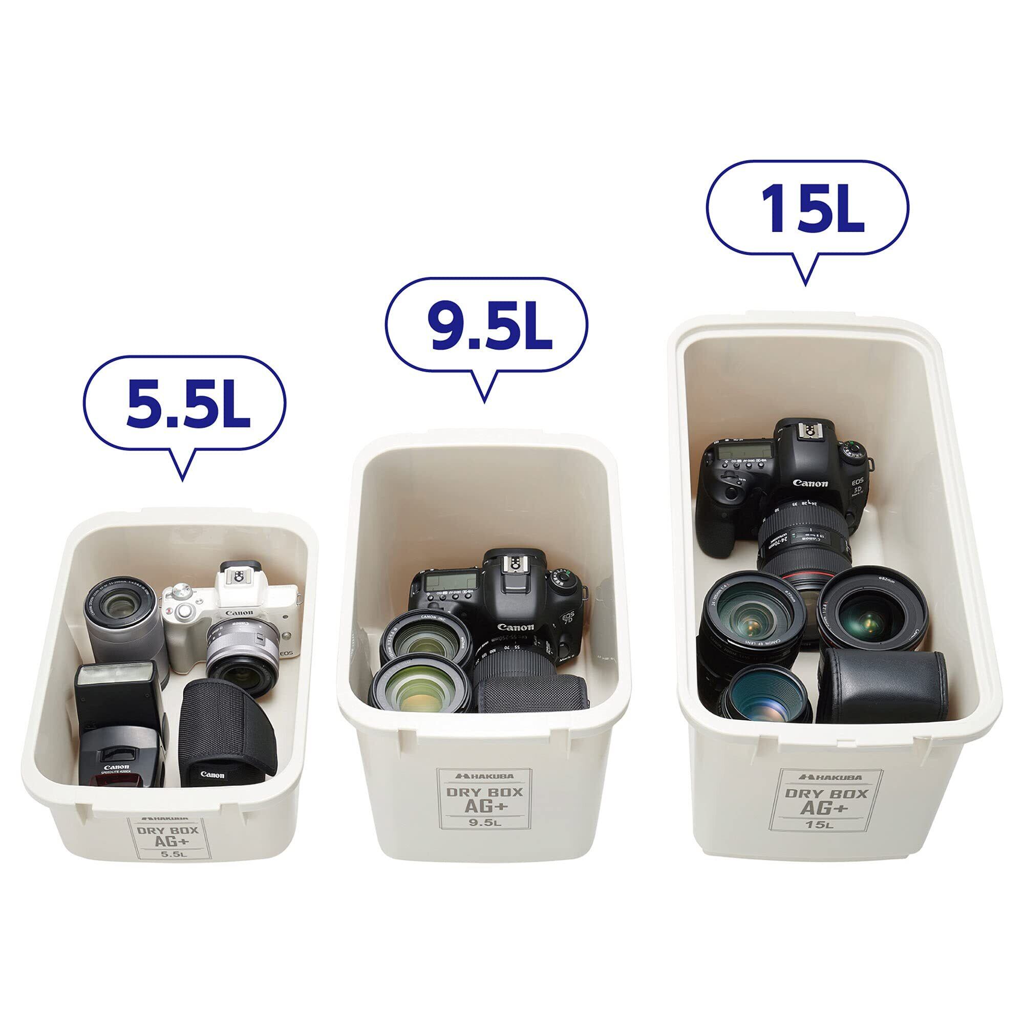 ミラーレスカメラの収納に丁度よい容量5.5リットルのコンパクトサイズ。 乾燥剤「キングドライ(15g×2入)」付属。
