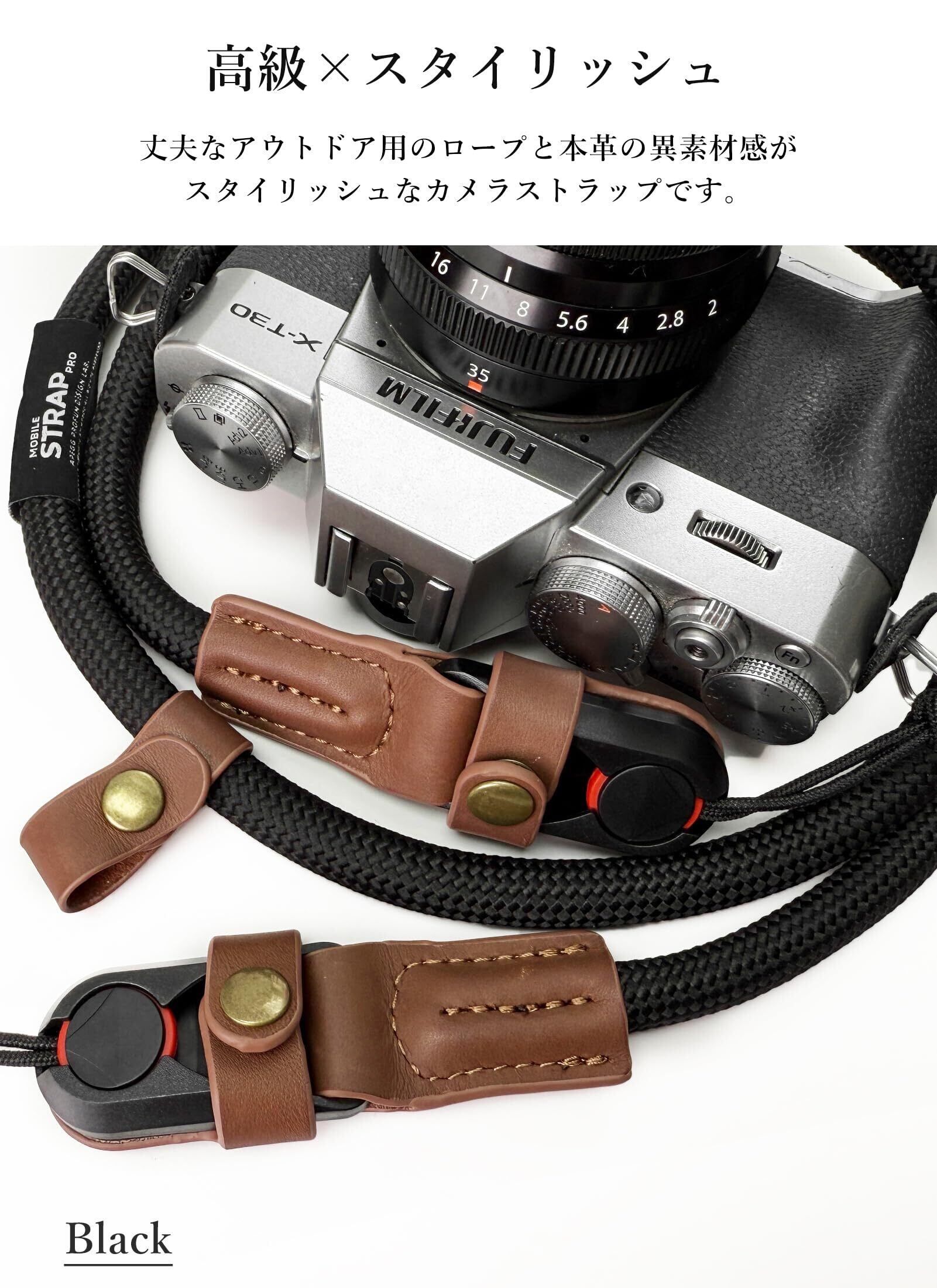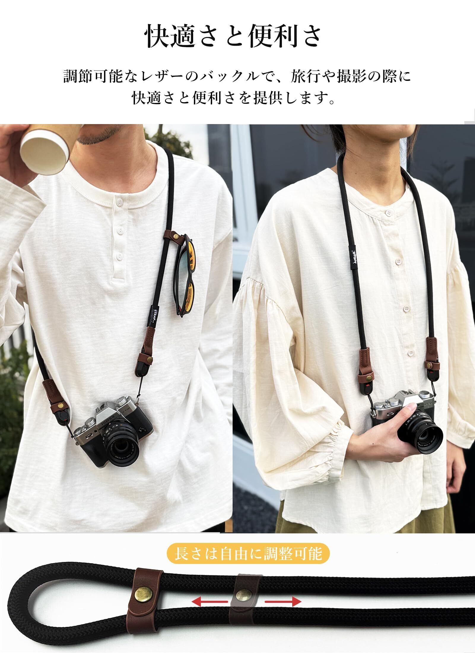 【耐荷重&防落下設計】ストラップ カメラの両端には高級本革カバーを採用し、登山用グレードの10mm強化ポリエステルロープを使用。高い耐久性と強度を実現し、安全性を最優先に設計。一眼レフやミラーレスカメラはもちろん、大型カメラの重量にもしっかり対応。