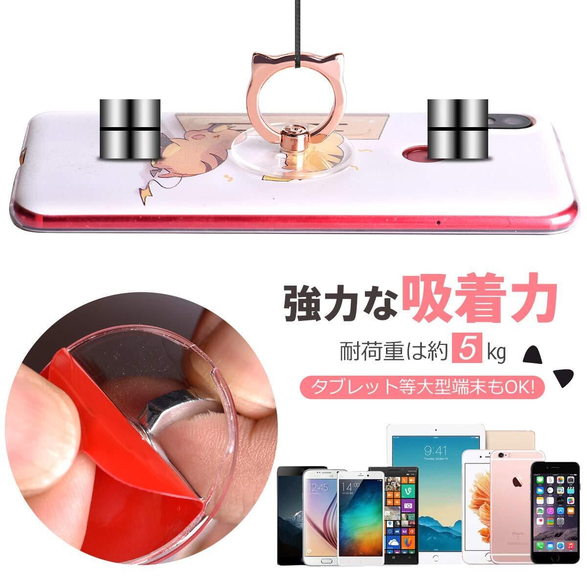 猫 透明 スマホリング ネコ 落下防止リング ホールドリング 薄型 スタンド 車載ホルダー 360回転 iPhone/Android各種他対応 (猫型1個バラの金+1個銀)