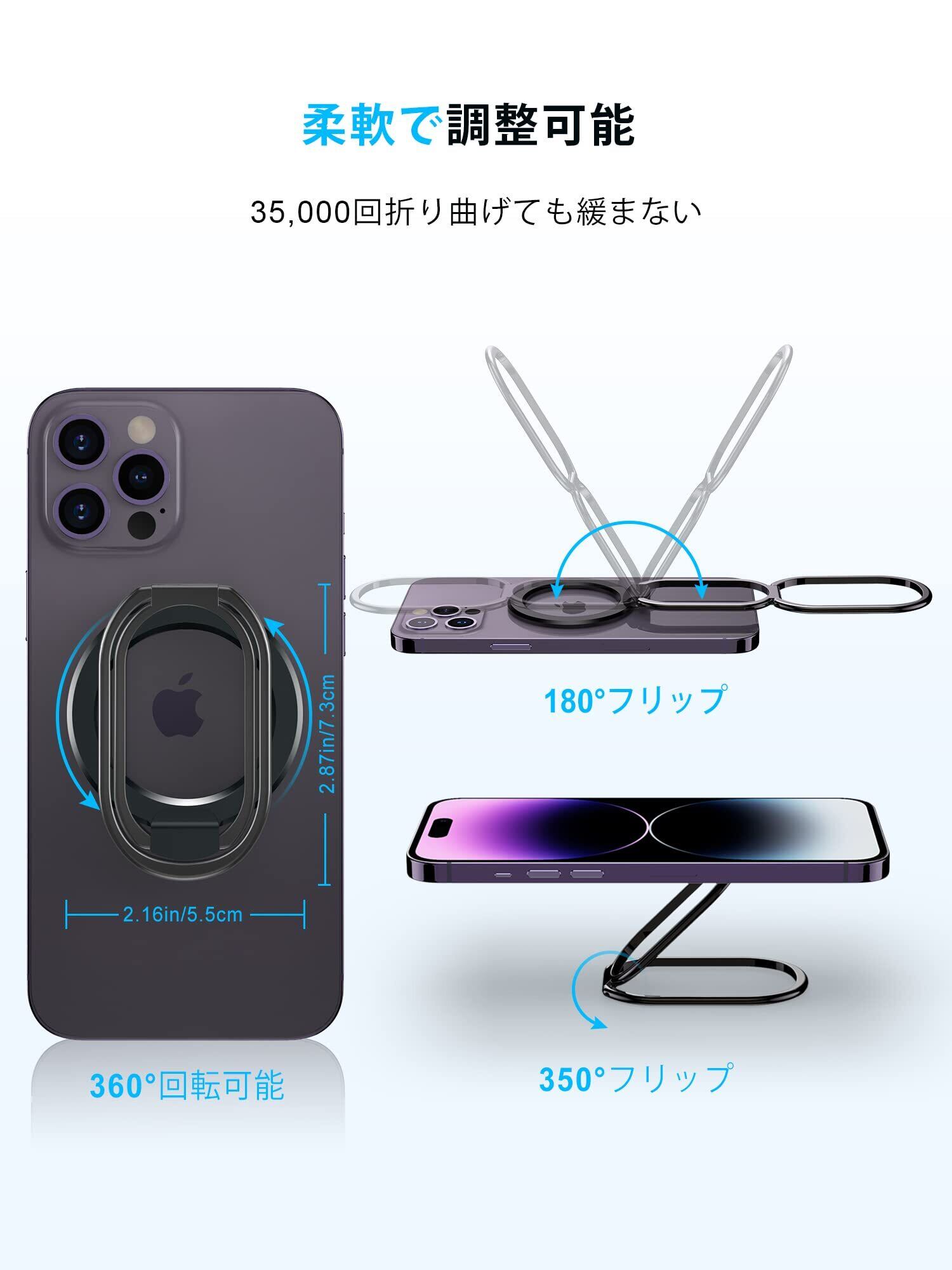【新春セール】【最新アップグレード構造 】 enGMOLPHYバンカーリングMagSafe対応 取り外し可能 マグネットリングスタンド金属製 2段階調整 折りたたみ 磁気フィンガーリングホールド 耐久性と安定性 iPhone 12/13/14/15シリーズ用 マグセーフ対応アクセサリー(黒) | jake