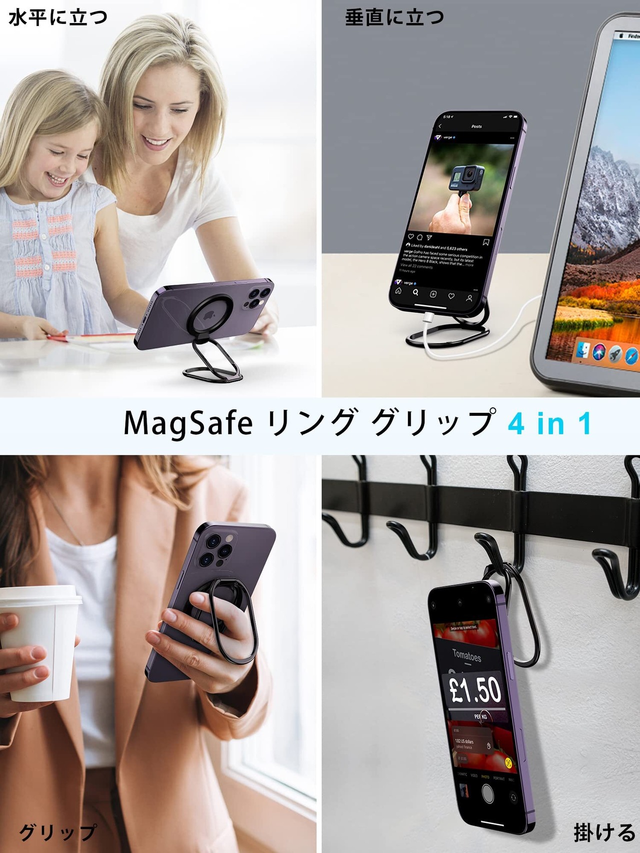 【手を離して人生を楽しむ】enGMOLPHYの最新のマグセーフ リング の研究開発は、独自の中空デザインで、熱放散を心配する必要はありません。 自宅、オフィス、勉強、外出、旅行、複数のシナリオに適しています。縦にも横にも使えて、角度も自由自在のデスクトップ用スマホスタンド。フックに掛けて使う事もできますし。歩行時のスマホリング指に引っ掛けて持ち運びに便利。 立てたり、引っ掛けたり、色々な使い方かま出来。これひとつで、スマホスタンドいらず、一石三鳥ぐらいの使いやすさ。