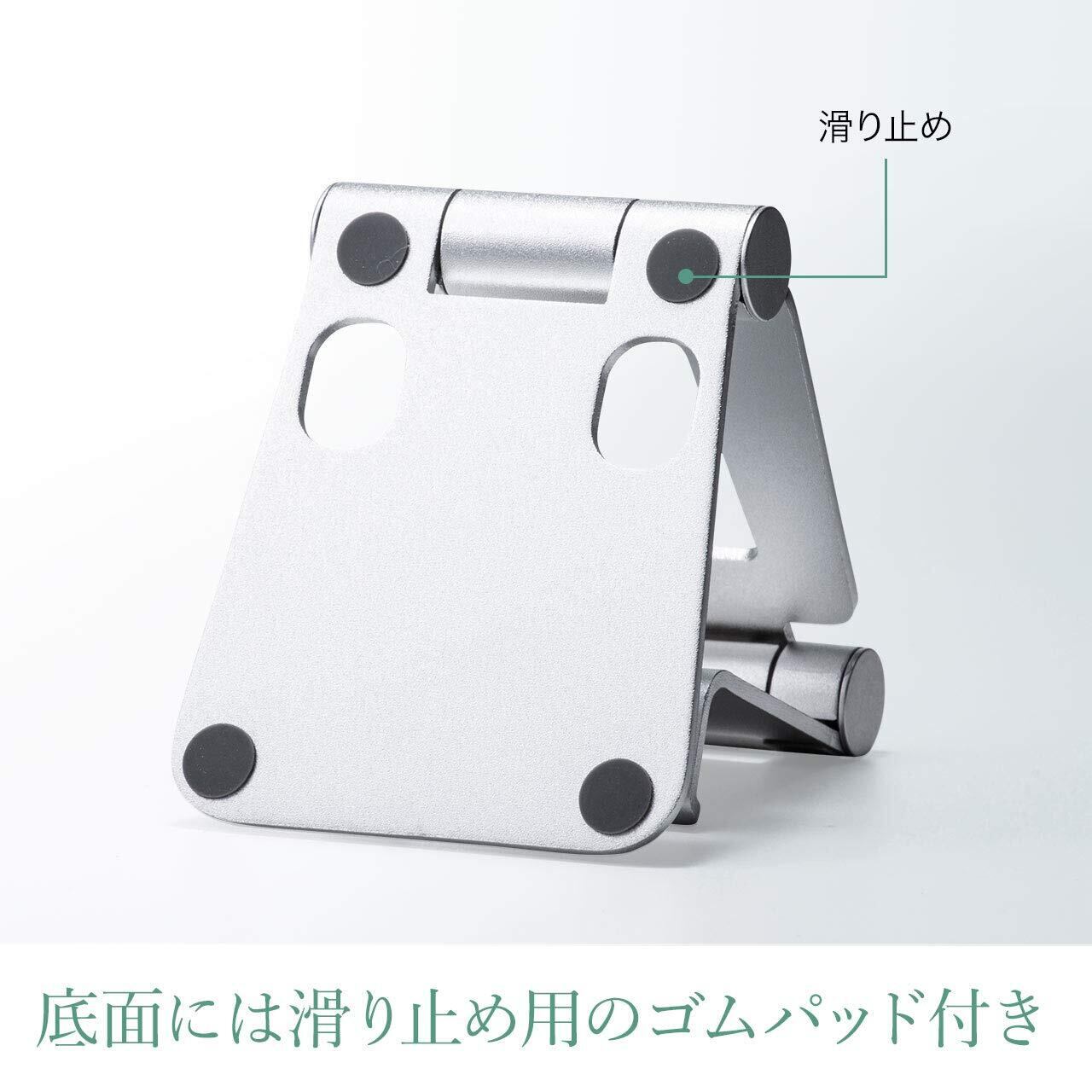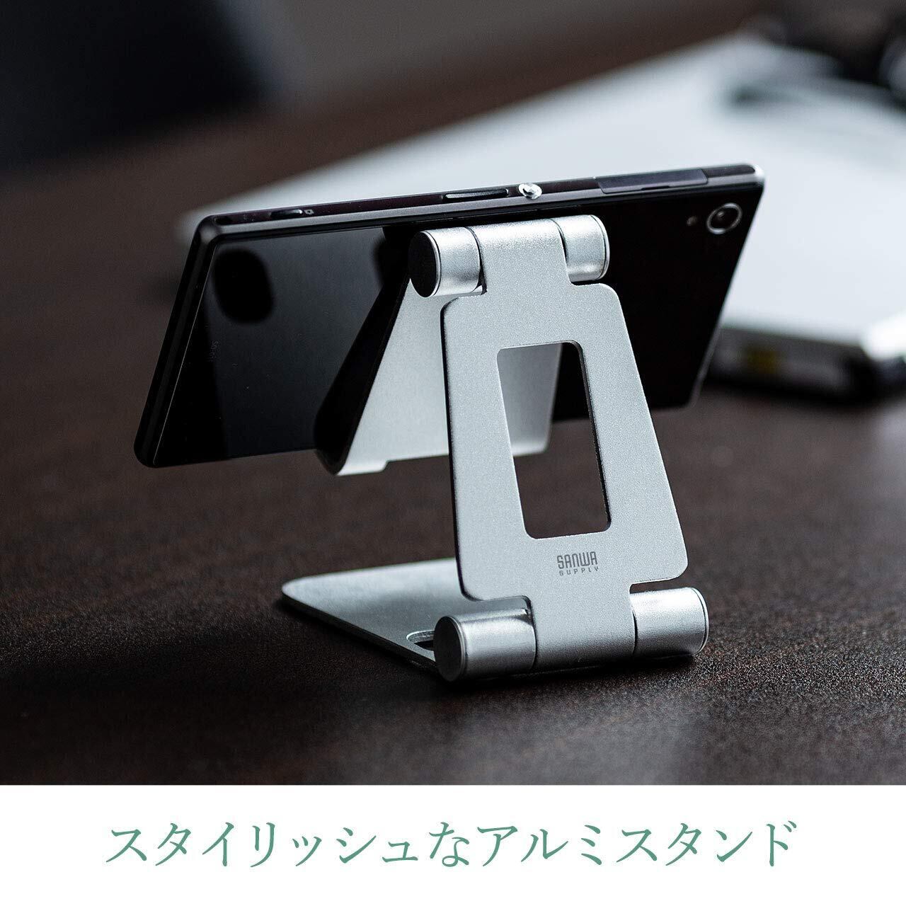 サンワダイレクト スマホスタンド 折りたたみ アルミ 無段階角度調整 iPhone Nintendo Switch 対応 シルバー 200-STN036