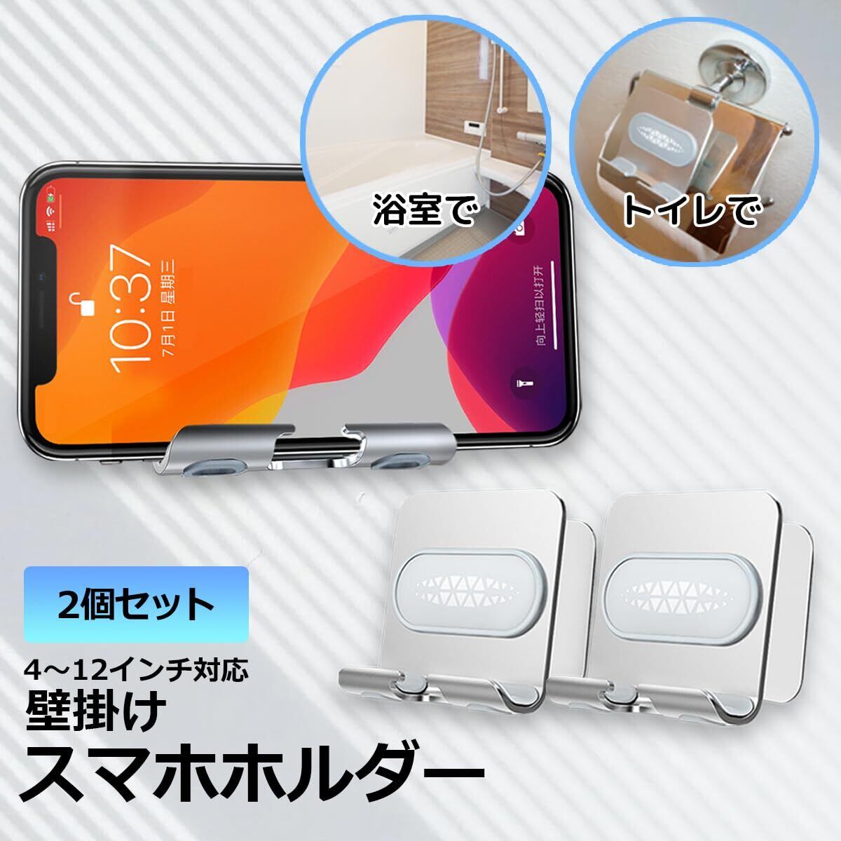 壁固定 スマホスタンド タブレットスタンド ホルダー 卓上 お風呂 キッチン 等 (スマホホルダー2個セット)