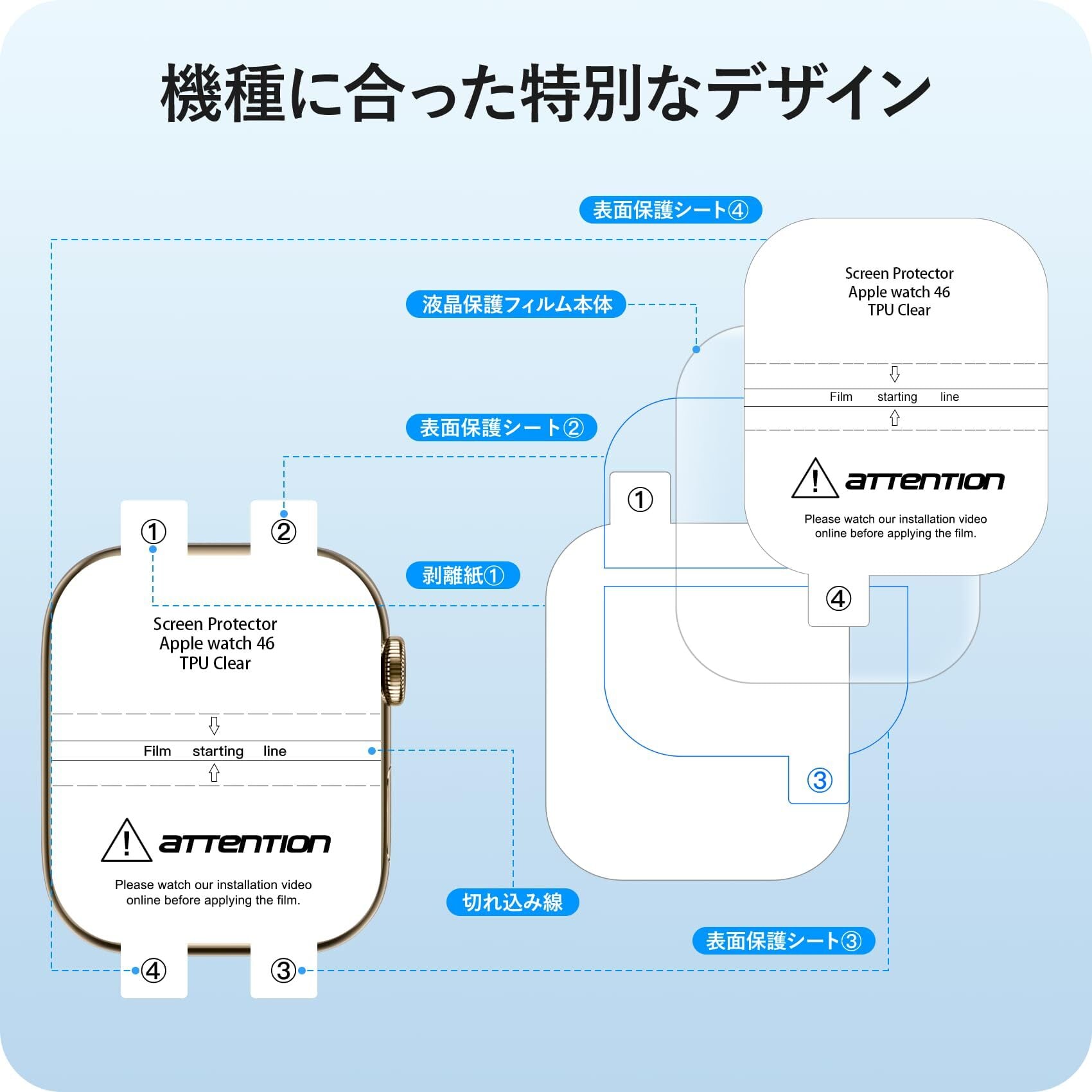 「高透過率&高感度タッチ」高透過率を持つ極薄TPU素材製、フィルムの装着感はゼロで、高い透明感アップルウォッチ 10画面の精細さを保ちます。高い品質なTPUで優れたタッチ感を実現します。