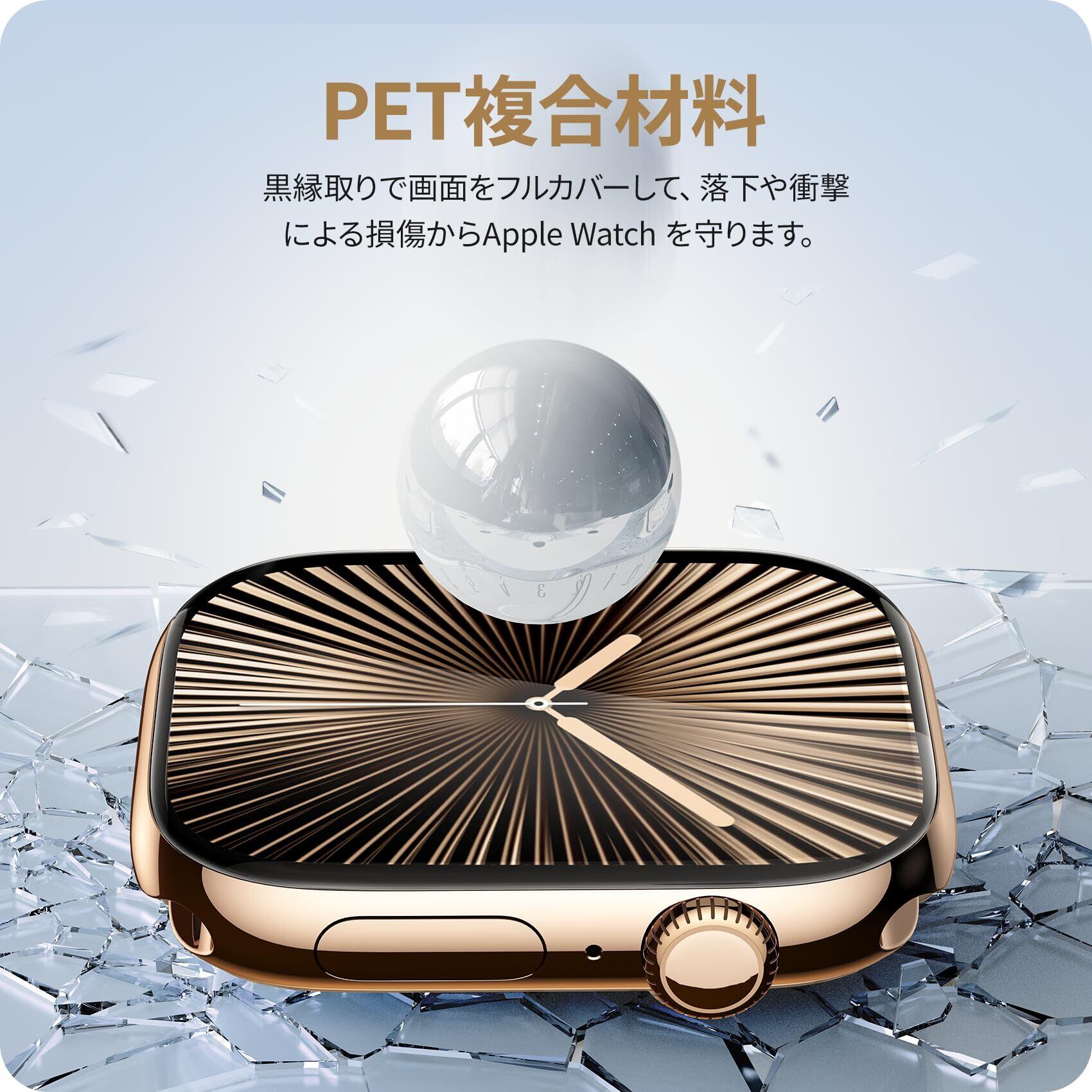 【黒縁全面保護・全新複合材料】新世代のPET複合材料、アップグレードされたカーボンファイバーソフトエッジを採用しており高い柔軟性があります。破損しやすいエッジのトラブルとはおさらば。曲線に沿って黒縁取りされていることでアップルウォッチの画面全体をカバーでき、落下や衝撃による損傷から watchを守ります。曲線部分も含め全画面を覆うことで、どんな角度から落ちてもフチ割れの心配はありません。 ご注意:全面保護のため、一部のケースと干渉がある場合がありますので、サイズに合わせて慎重にお買い求めください。フィルムサイズ:42.65mm*36.3mm*0.43mm