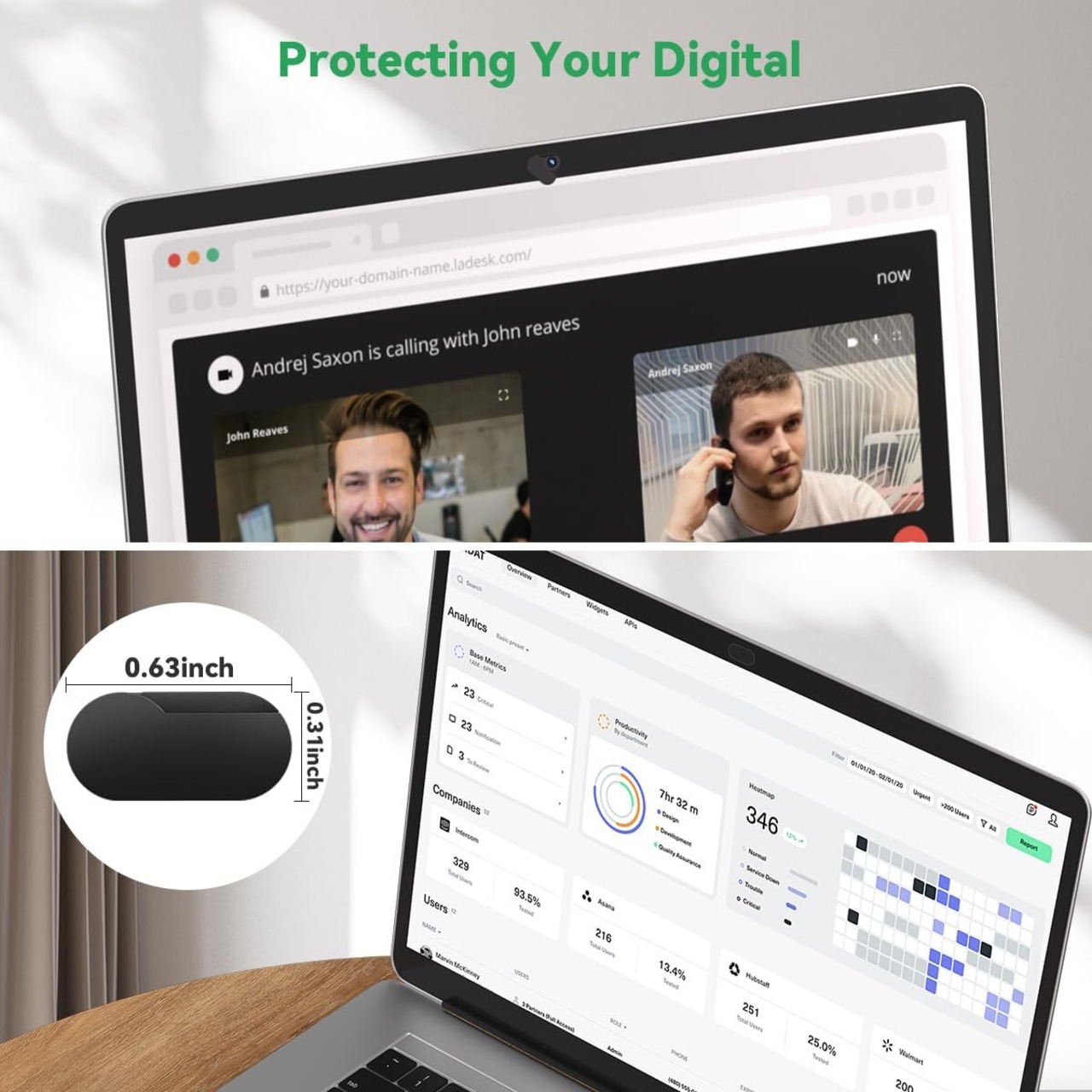 厚さわずか 0.4 mm/0.015 インチのこのウェブカメラ カバーは、すべてのラップトップおよびタブレットと互換性があり、デバイスの機能を妨げることなくシームレスに見えます。