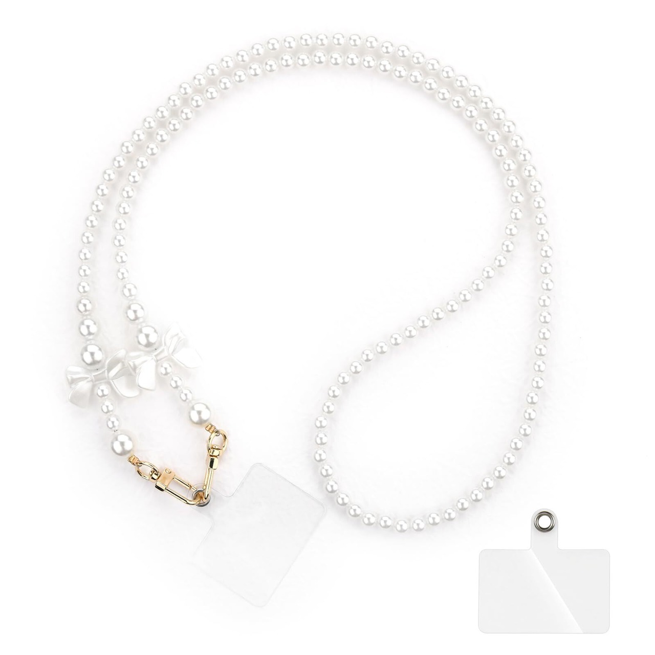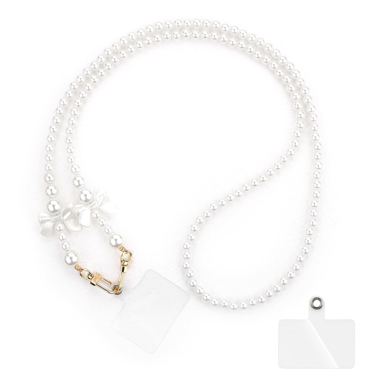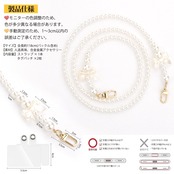 【製品仕様】◆対応機種 :全機種対応。◆ 内容物:パールストラップ × 1本、タグパッチ ×2枚。◆ 素材 : 人工パール、メタル◆ サイズ : 約 118cm(手動測定のため、1~3cmの誤差があります。) ◆ 重量 : 約 55g。
