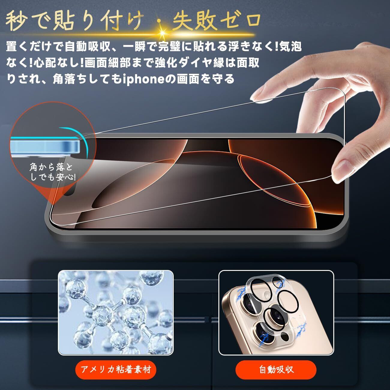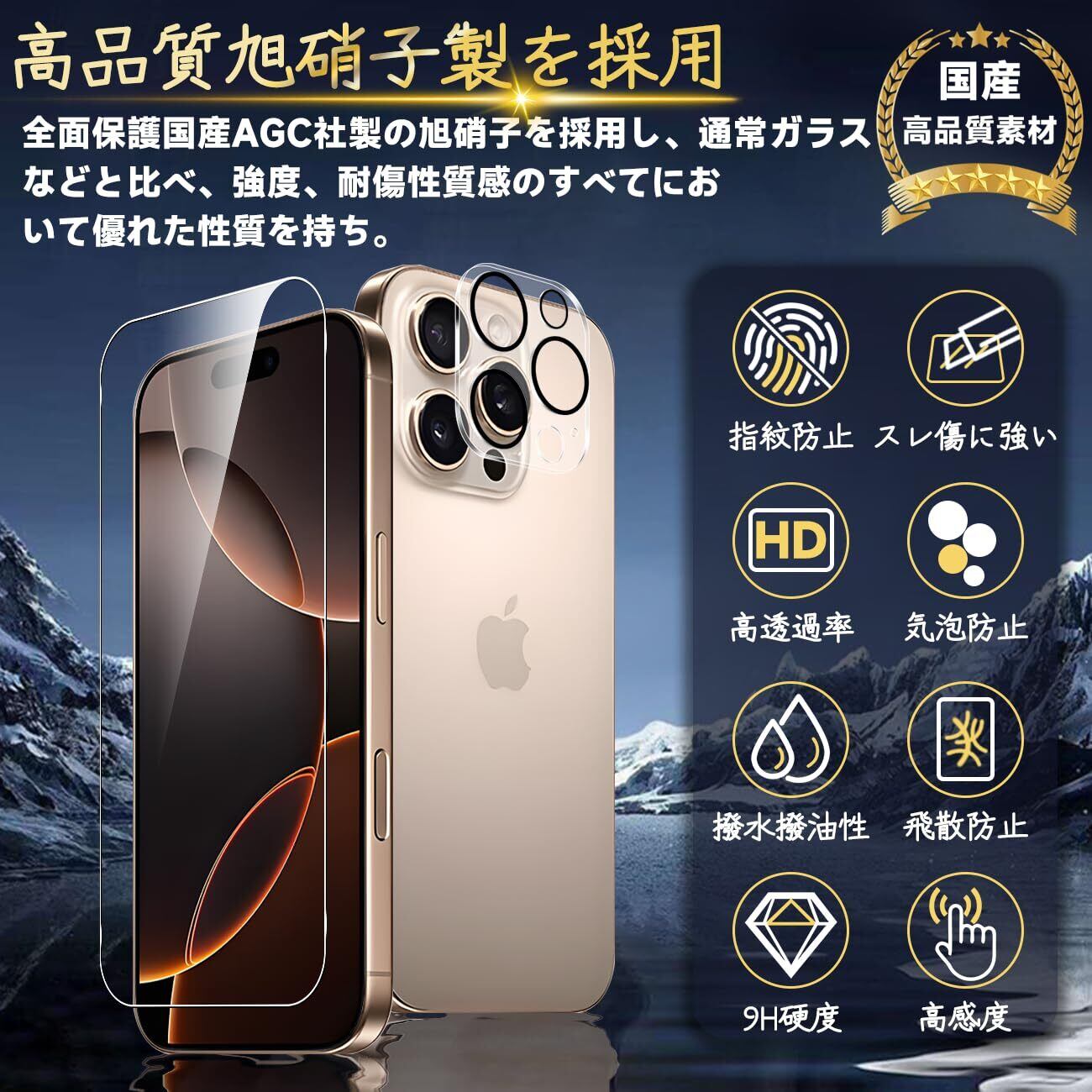 対応 iPhone 16 Pro ガラスフィルム apple iphone16 Pro ガイド枠付き 指紋防止 【2* フィルム + 2* レンズ保護フィルム+ 1*ガイド枠付き+ 1*取り除き発泡板】国産旭硝子材質 アイフォン16Pro 薄型 強化ガラス iPhone16 Pro 保護フィルム 高光沢 いpほね16Pro 液晶 ガラス ケース 9H硬度 厚さ0.26mm超薄型 高透過率 気泡なし ラウンドエッジ加工 簡単貼り付け 3D Touch対応 SENXLL-16ProG05