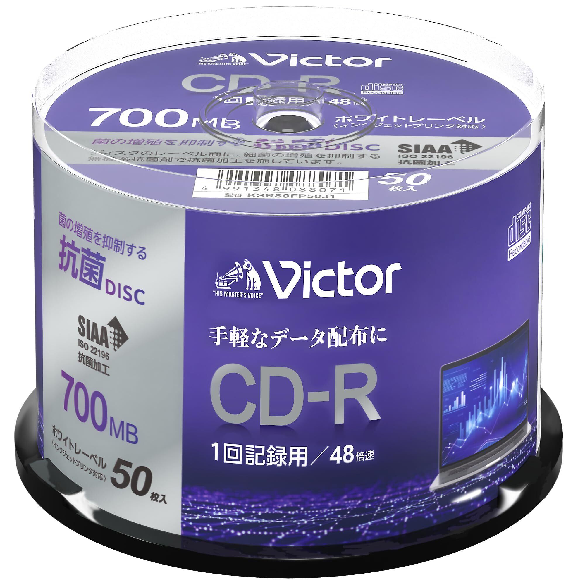 ビクター データ用 CD-R 80分 50枚 インクジェットプリンタ対応(ホワイト) 48倍速 KSR80FP50J1