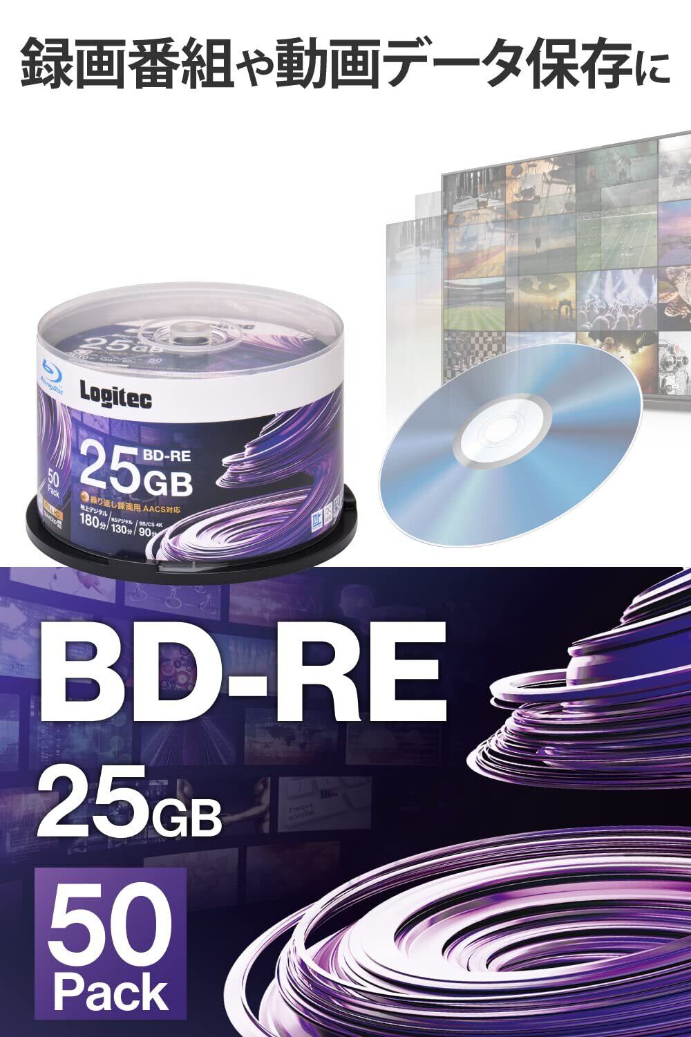 ロジテック BD-RE AACS対応 ブルーレイディスク Blu-ray Disc 2倍速 くり返し録画用 記録用 25GB 記録メディア スピンドルケース 50枚入り LM-BRE25VWS50W