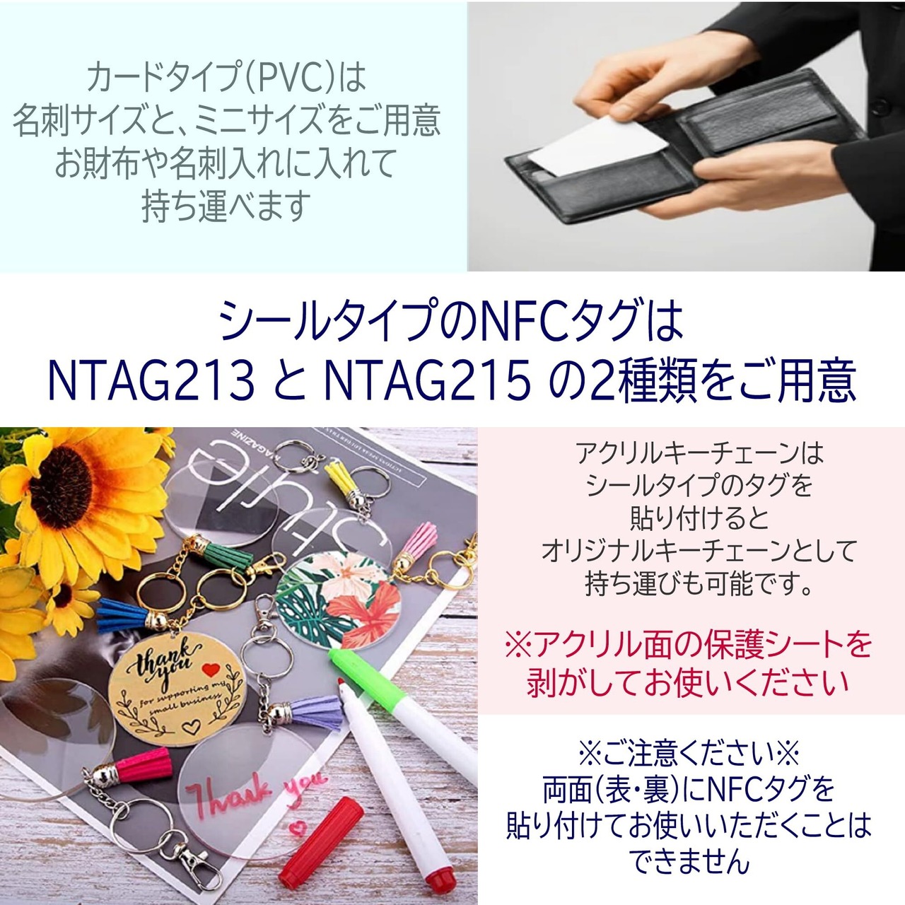 Celvish NFCカード NFCタグ シール キーホルダー カード 12点セット Ntag 213/215バイト シール 名刺カード ミニサイズカード アクリルキーチェーン アクリルキーホルダー付 (キーホルダーサイズ小(5.0cm))