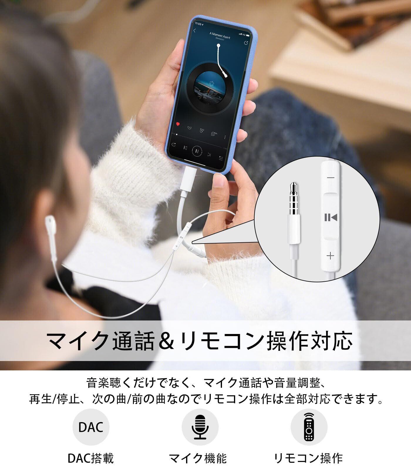 【MFi認証品 通話可】 Lightning - 3.5 mm イヤホンジャック 変換アダプタ ライトニング イヤホン 変換 iPhone イヤホン 変換アダプタ 通話/音楽/音量調節対応 iPhone/i-Padに対応