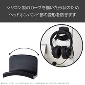 ヘッドホンをかけておくフック部は、シリコン製のカーブを描いた形状のためヘッドホンバンド部の変形を防ぎます。