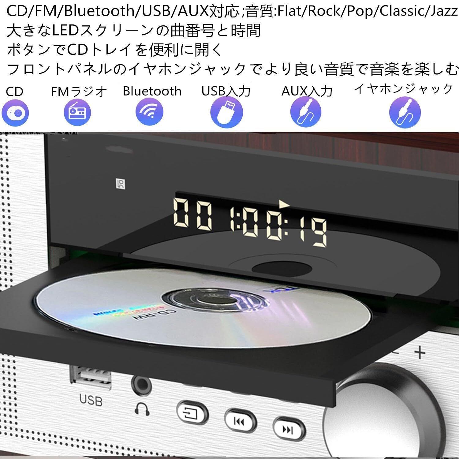 CDプレーヤー 40W コンパクトコンポーネントシステム CDステレオミニコンポ FMラジオ Bluetooth対応スピーカー USB/AUX入力 ヘッドフォンジャック 日本語リモコン ウッドキャビネット ウォールナット