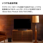 Bose TV Speakerで、テレビのサウンドを、もっとクリアに。トークやセリフをクリアに再生、テレビのサウンドを向上させるコンパクトなサウンドバーです。内部には、角度のついた2つのフルレンジドライバーを搭載し、拡がりのあるサウンドを実現。さらに中央のツイーターがボーカルを際立たせます。ドルビーデコード内蔵で、スピーカーのオーディオ機能を強化、よりリアルで豊かなリスニング体験を実現。