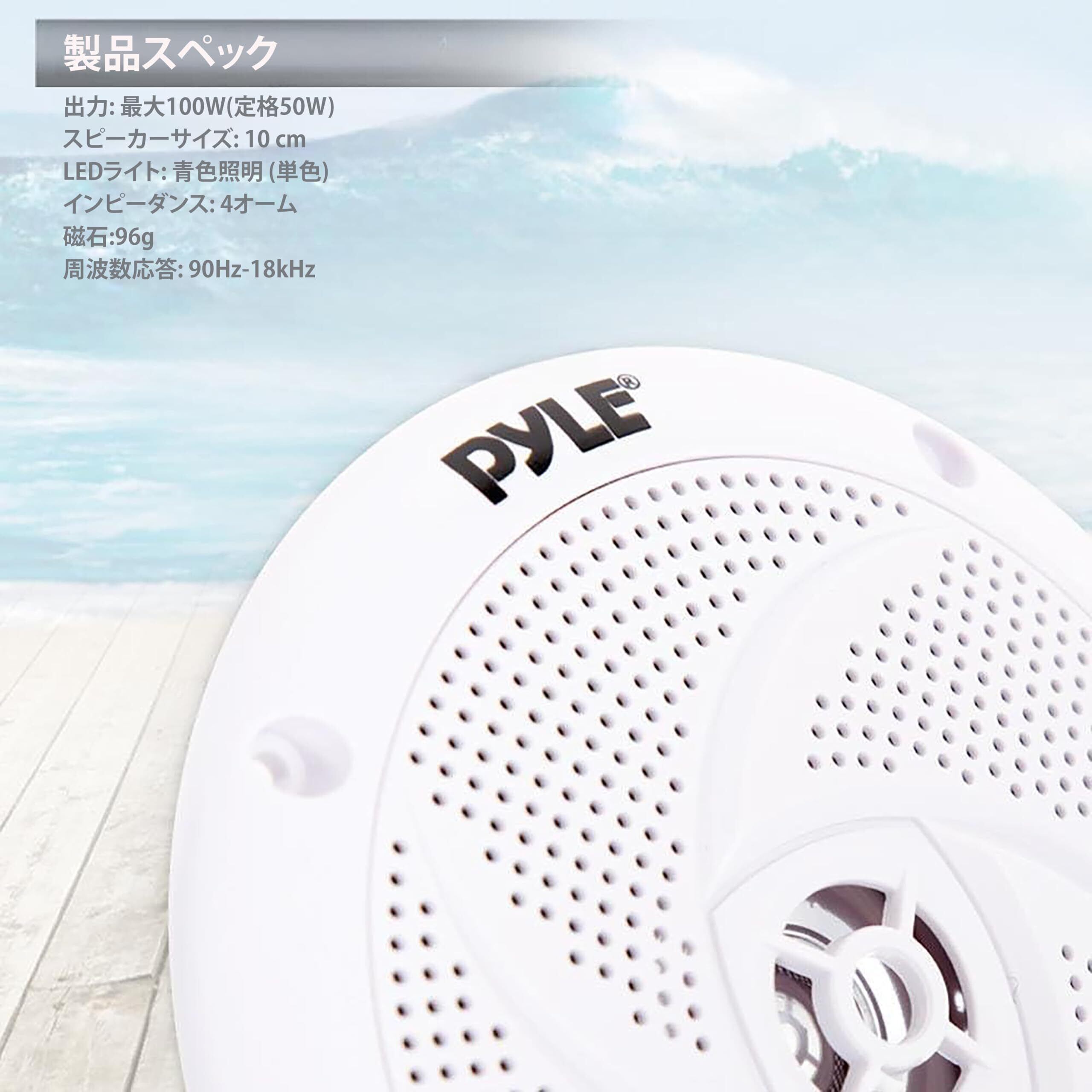 【Pyle 埋め込み型 完全防水 車用 2WAY・フルレンジスピーカー (2個セット) マリンスピーカー 18.5cm 丸型】最大出力240W 定格出力 120W 感度90db 4オーム 周波数応答: 60 Hz〜18 kHz 薄型スリムデザイン 青のLEDライト内蔵 付属の配線で簡単に設置可能 壁 天井 埋込型 1年間のメーカー付き(ペア) (ホワイト (光るブルーLEDライト))