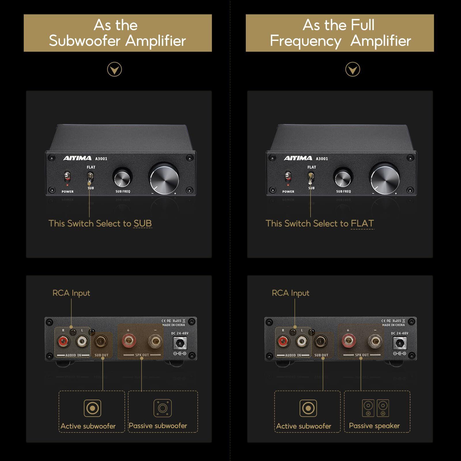 ❶The Instruments TPA3255D2チップとNE5532オペアンプを搭載。 AIYIMA A3001サブウーファーアンプは、ほとんどの家庭用パッシブスピーカーやアクティブサブウーファーを駆動することができます。