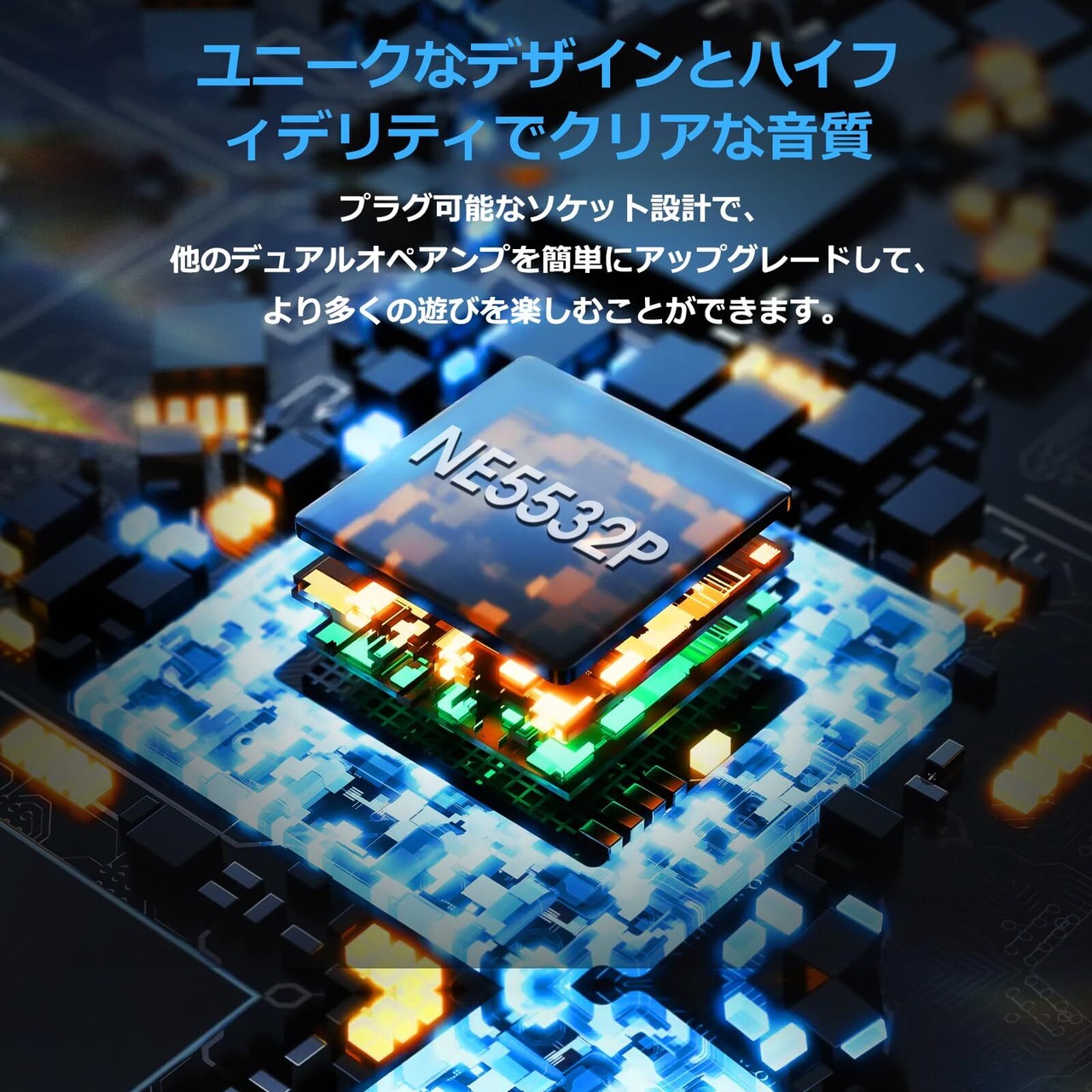 ダブルサイドPCBデザイン、ネームドソケットデザインのNE5532Pオペアンプ、他のデュアルオペアンプにアップグレードしてプレイビリティを高めるための便利性。高品質のシールドポテンショメーターは広い周波範囲と優れたダイナミックレスポンスをし、超低歪率でスムーズで温もりのある自然なサウンドを提供します。