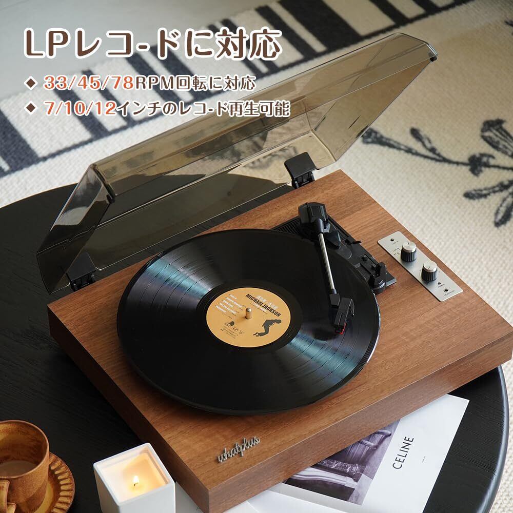 WhatPlus レコードプレーヤー ワイヤレス受信/送信 33/45/78回転対応 7/10/12インチレコード対応 RCA LINE出力 ヘッドホンジャック 防塵カバー