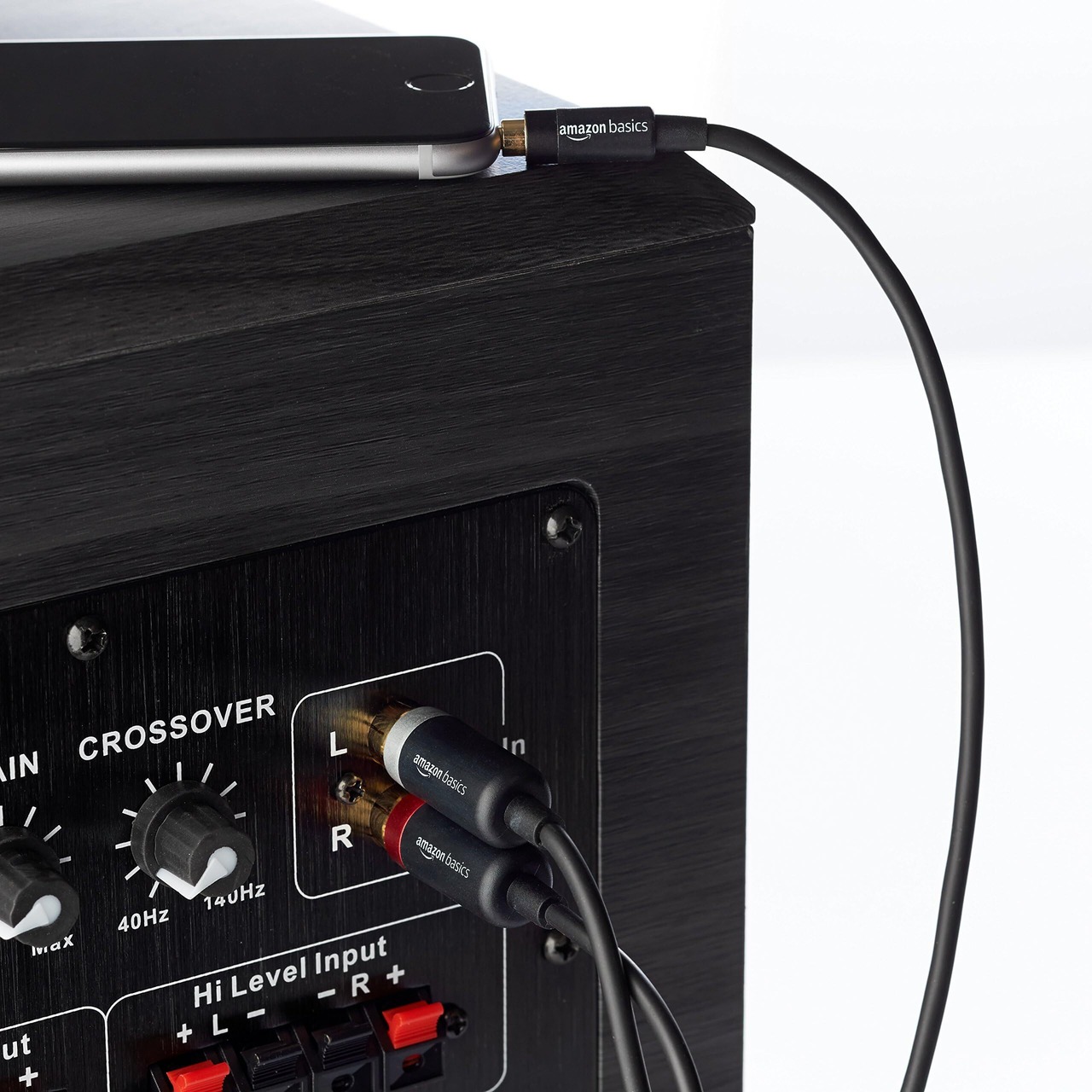 ベーシック RCAアダプターオーディオケーブル アンプ用 (3.5Aux - 2 RCA) 金メッキプラグ付きアクティブスピーカー ブラック 1.2m