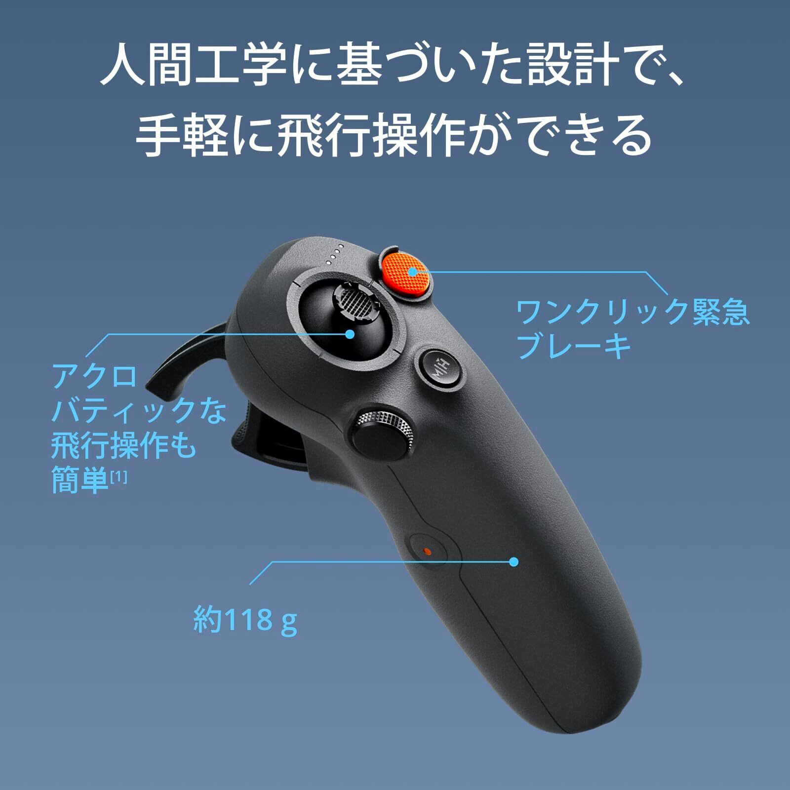 コンパクトでポータブル、機能も多数搭載 -軽量で携帯性に優れたDJI RC Motion 3は、合理的なデザインで、快適なグリップ感を実現しています。コンパクトなボディに、様々な機能ボタンが直感的に使えるように配置されているので、離陸、停止、モード切り替えが指一本で簡単に操作できます。