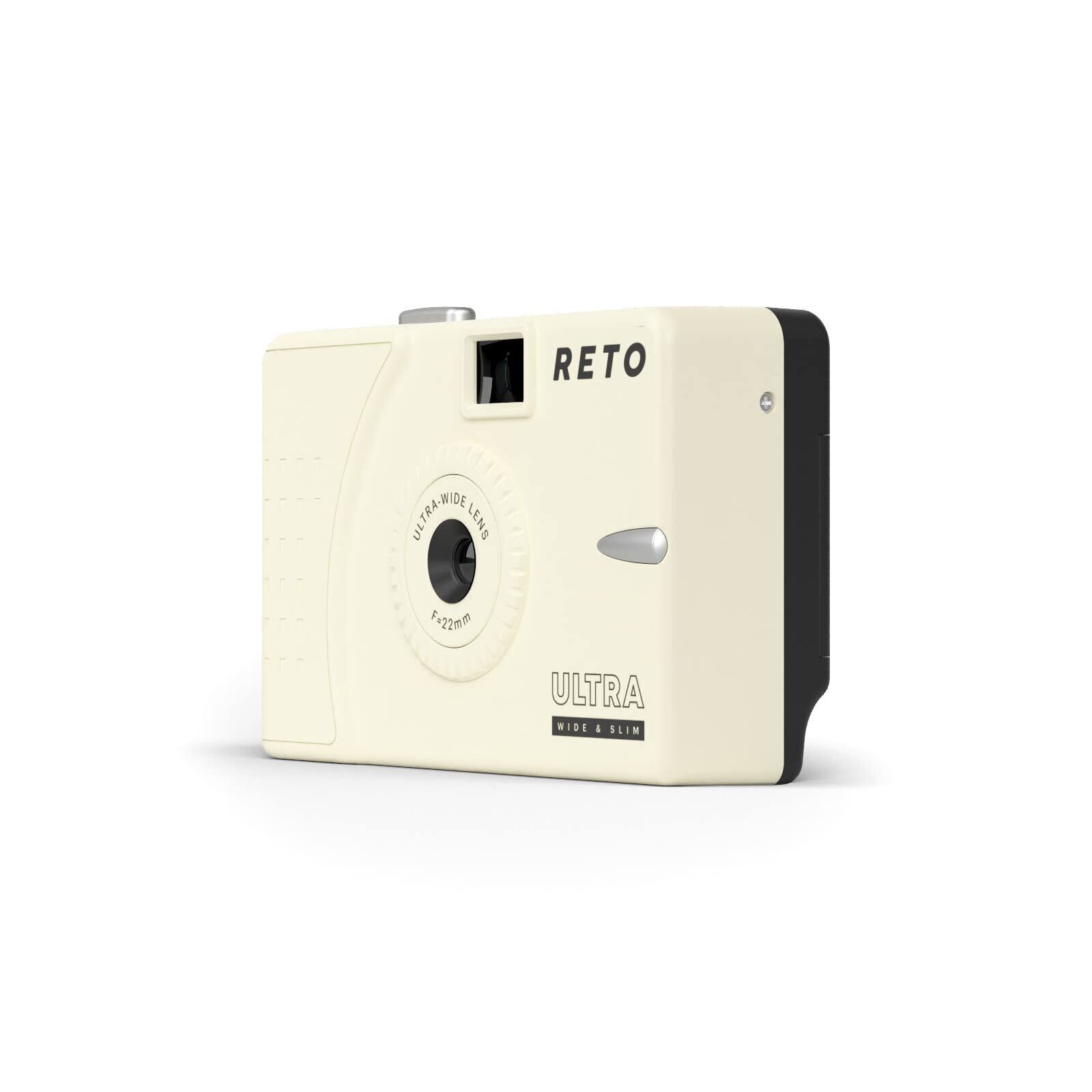 RETO Ultra Wide & Slim 35mm 再利用可能な昼光フィルムカメラ - 22mm 広角レンズ、フォーカスフリー、軽量、使いやすい (クリーム)