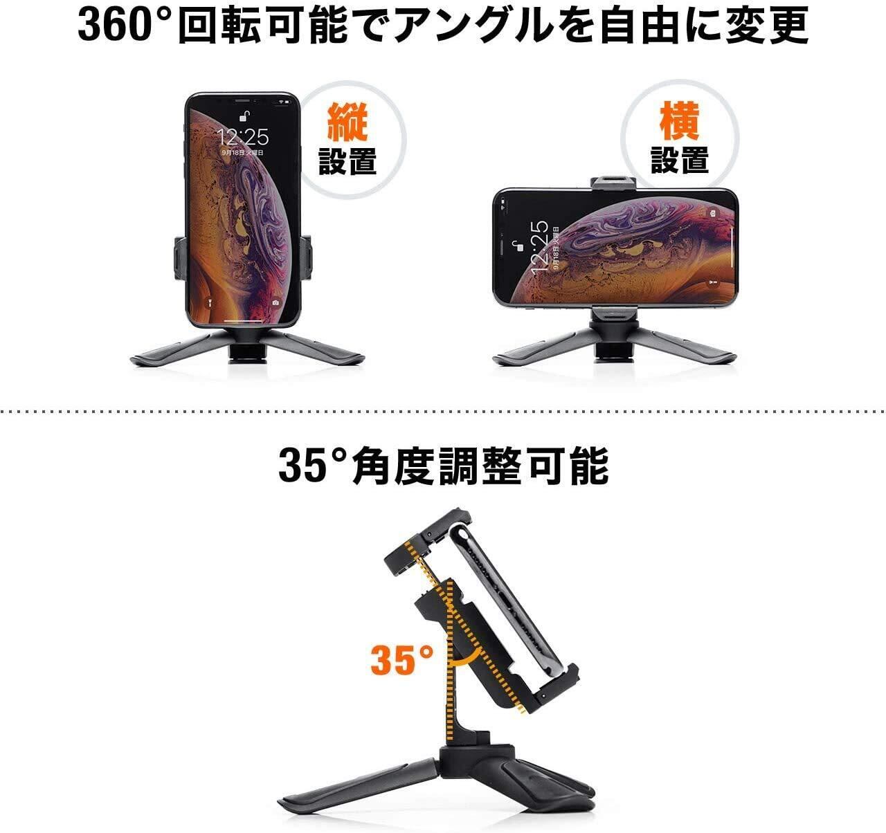 サンワダイレクト スマホ 三脚 軽量 80g iPhone14シリーズ対応 スマホスタンド 360°回転 カメラ/三脚 取付対応 200-DGCAM018