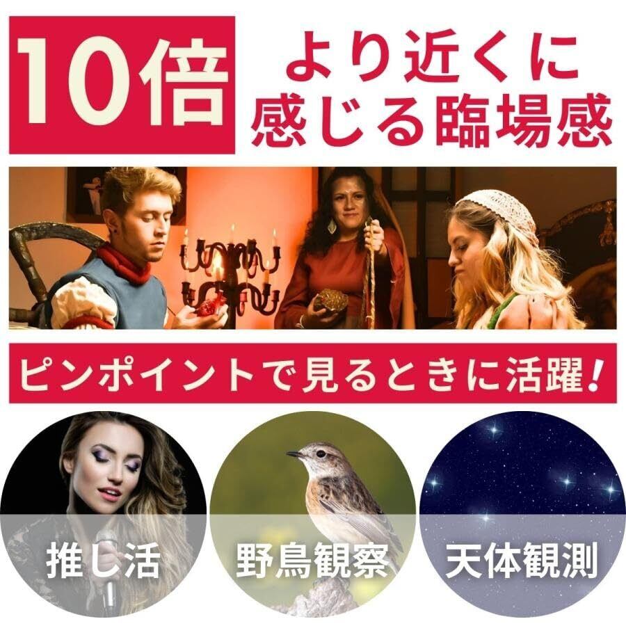 【10倍の高倍率】 ・より近くで見たい時に便利です、すぐ近くにいるように迫力を感じることができます。 【計算された設計】 ・マルチコートレンズ採用 反射を抑え自然に明るく見えるレンズです。