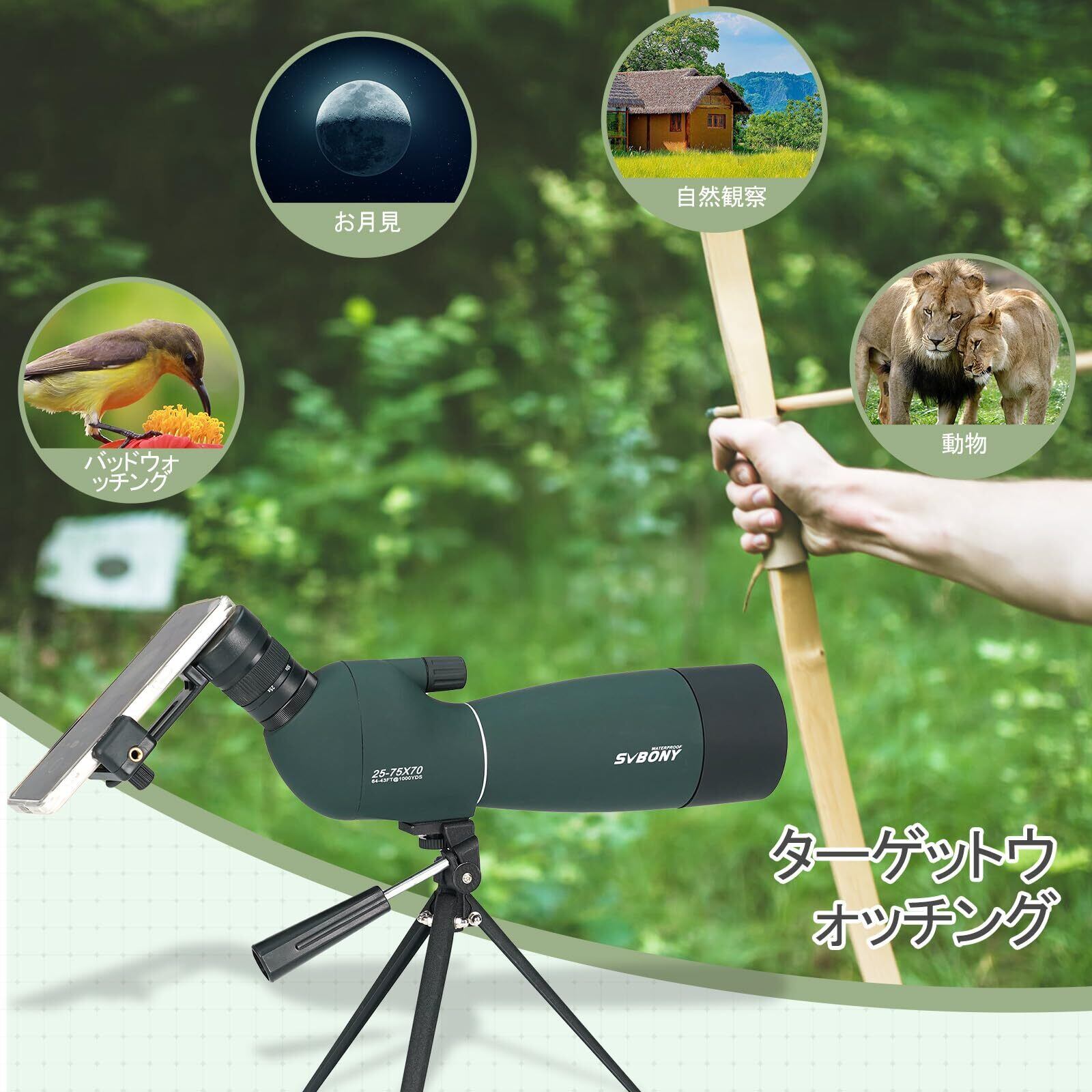 25-75倍のズーム倍率。SV28スコープは初心者向けに設計されて、焦点合わせと倍率変更のが簡単です。鳥や風景を見るときにセットアップが簡単です。