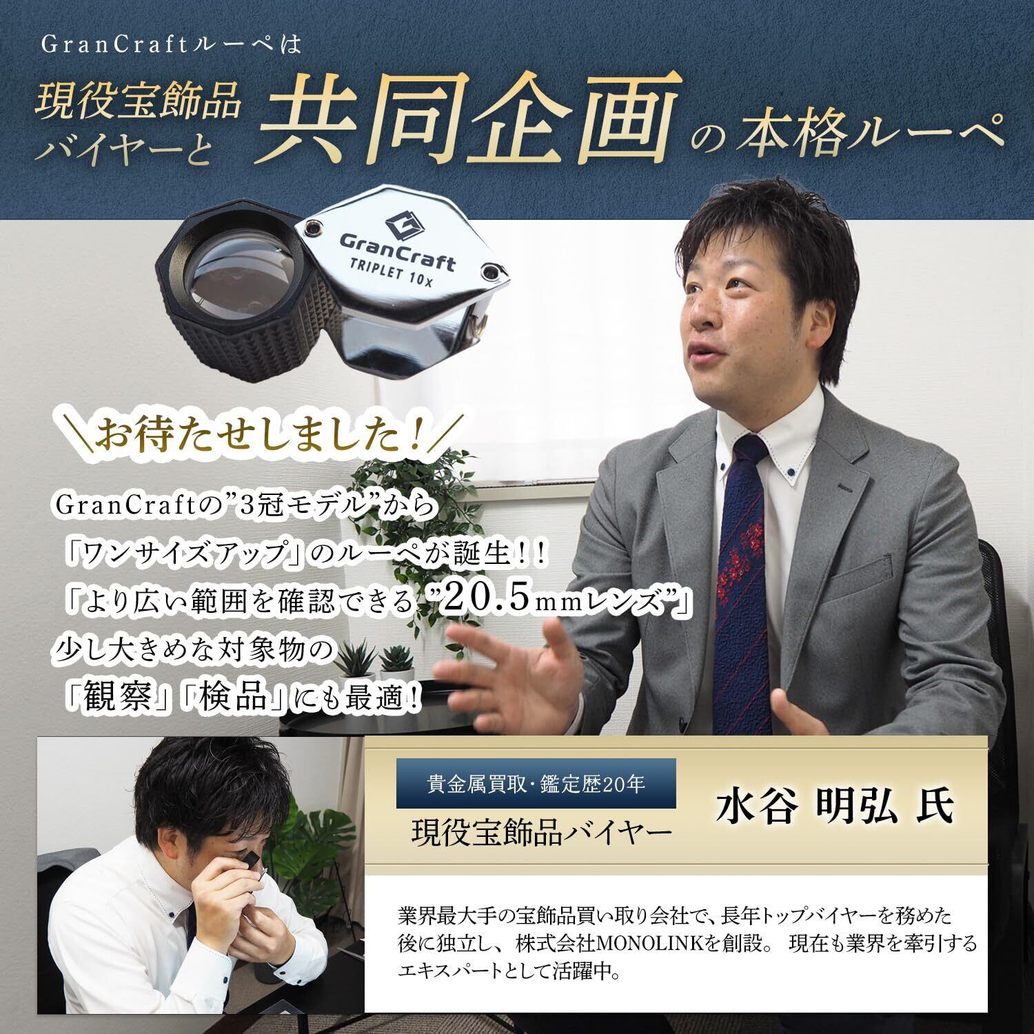 【プロ鑑定士と共同開発】 ルーペ GranCraft 【待望のワンサイズ大きめ 20.5mmレンズ】 観察 鑑定 検査 10倍 ジュエリールーペ 拡大鏡 【鑑定最適倍率x3重構造トリプレットレンズ】 【A9レンズ採用xリベット留めでゆるまない】