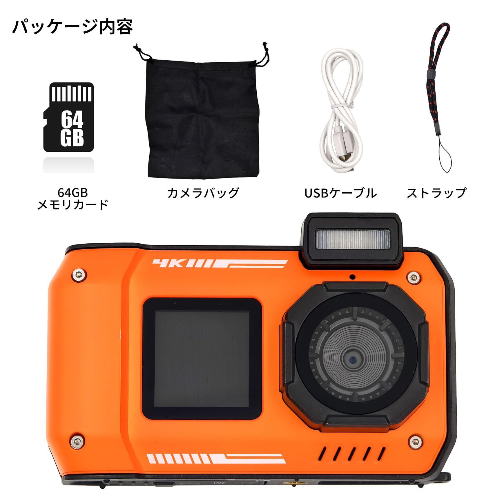 4K デジカメ 防水 水中カメラ 防水カメラ 10M防水 ケース不要 デュアルスクリーン 自撮可能 操作簡単 防水 軽量 コンパクト