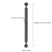 製品の両側には滑り止めのゴムリングが付いている1インチのボールヘッドがあり、ボールクリップを使用して角度を自由に調整できます。 製品のゴムリングの間に複数の長さの仕様があり、ニーズに応じて対応するエクステンションを選択できます。 アーム部はアルミニウム合金とカーボンファイバーのデザインを採用しており、軽量であるだけでなく、ダイビング中の浮力効果も発揮。 腕への負担を軽減します。