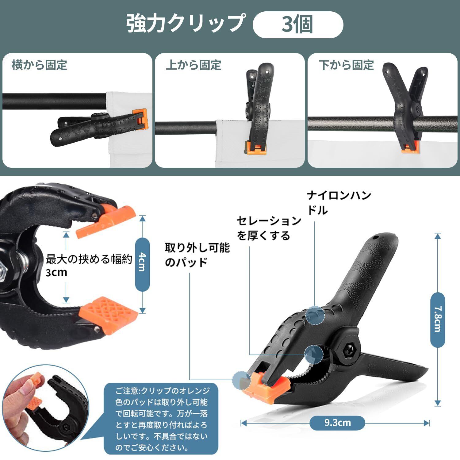 【幅広い用途】本白布と黒布背景スタンドは製品、小物、美食、ジュエリー、おもちゃ、アクセサリーなどの撮影に大活躍です。ヤフオクやメルカリの出品商品の写真を撮る時にオススメします。パッケージ内容:ライトスタンドx1、クロスバーx2、強力クリップx3、背景スタンド用の収納袋x1、背景布黒x1、背景布白x1。