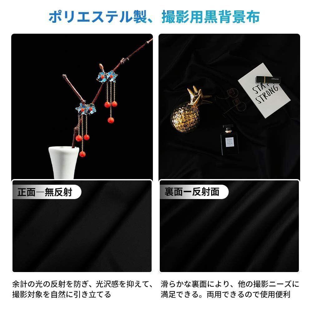 【無反射の撮影背景布】黒布の正面は無反射で、余計な光の反射を防ぎ、光沢感を抑えます。撮影対象を自然に引き立てでき、撮影スタジオ、写真や動画撮影に理想的な製品です。裏面は反射面、様々な撮影ニーズに満足ができます。