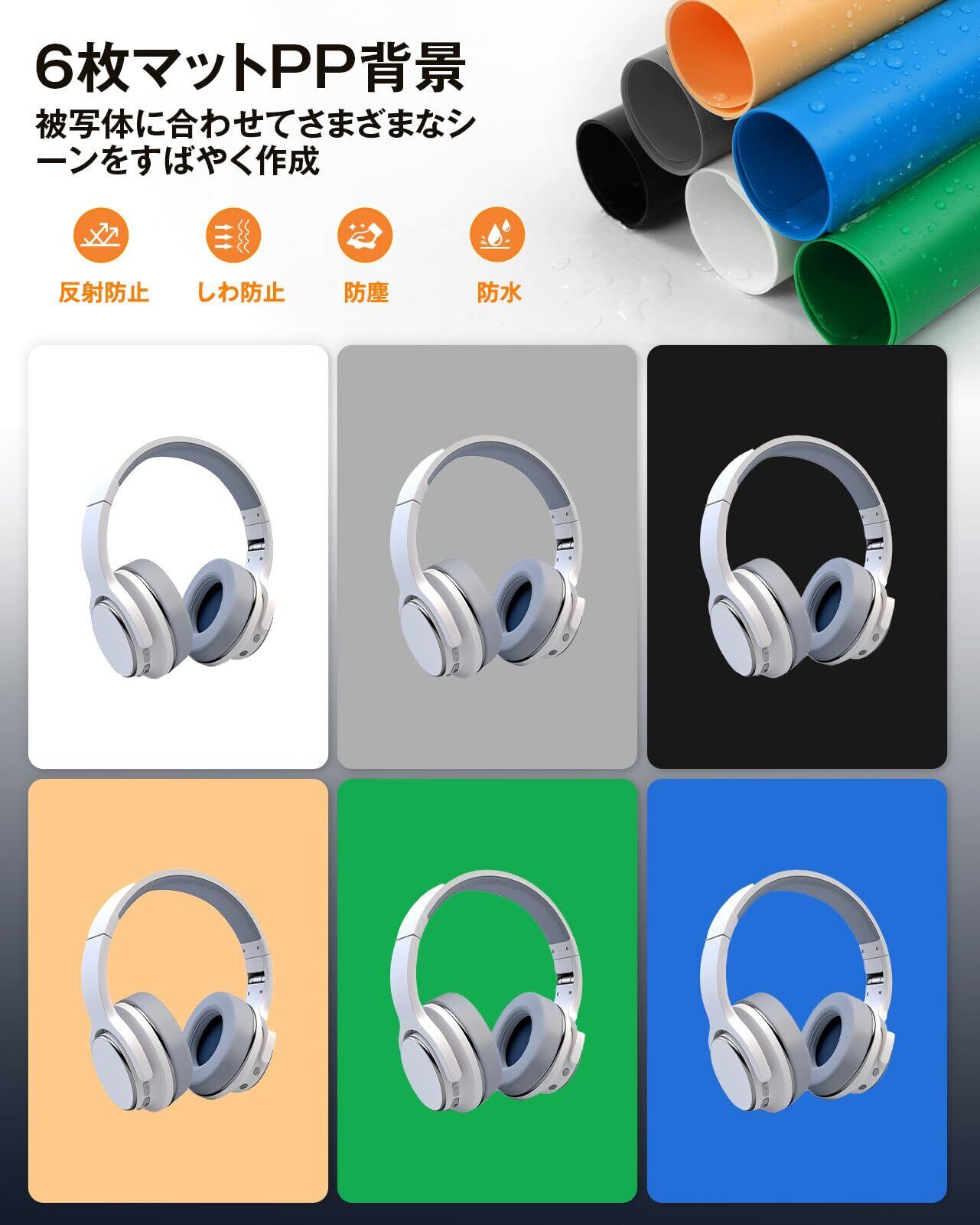 【6 マット写真の背景】撮影キットには、しわになりにくく、防塵、防水、お手入れが簡単で、PVC背景よりも反射防止性が高く、紙の背景よりも耐久性のある6つの高品質PPカラー背景(白、黒、グレー、ライトオレンジ、緑、青)が付属しています。被写体に合わせて様々なシナリオを素早く構築し、カラフルな写真を撮ることができます。