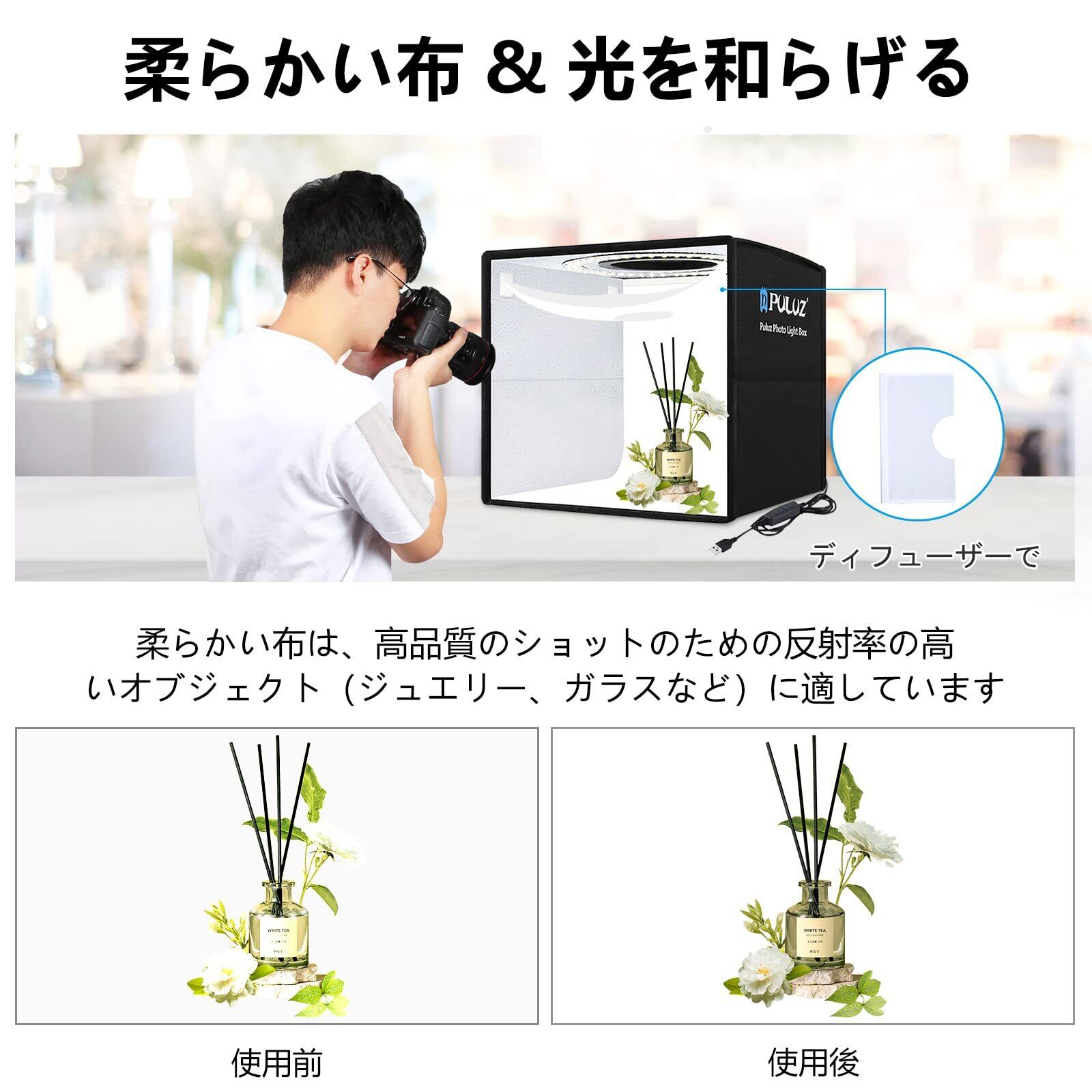 【在庫処分】PULUZ 撮影ボックス 25cm 折りたたみ式 簡易スタジオ 撮影キット 明るさ調節可能 撮影ブース 102個のハイカラービーズLEDライト & 6枚の両面背景紙 (合計12色) 写真スタジオ 組み立て簡単 小物撮影用 | jake