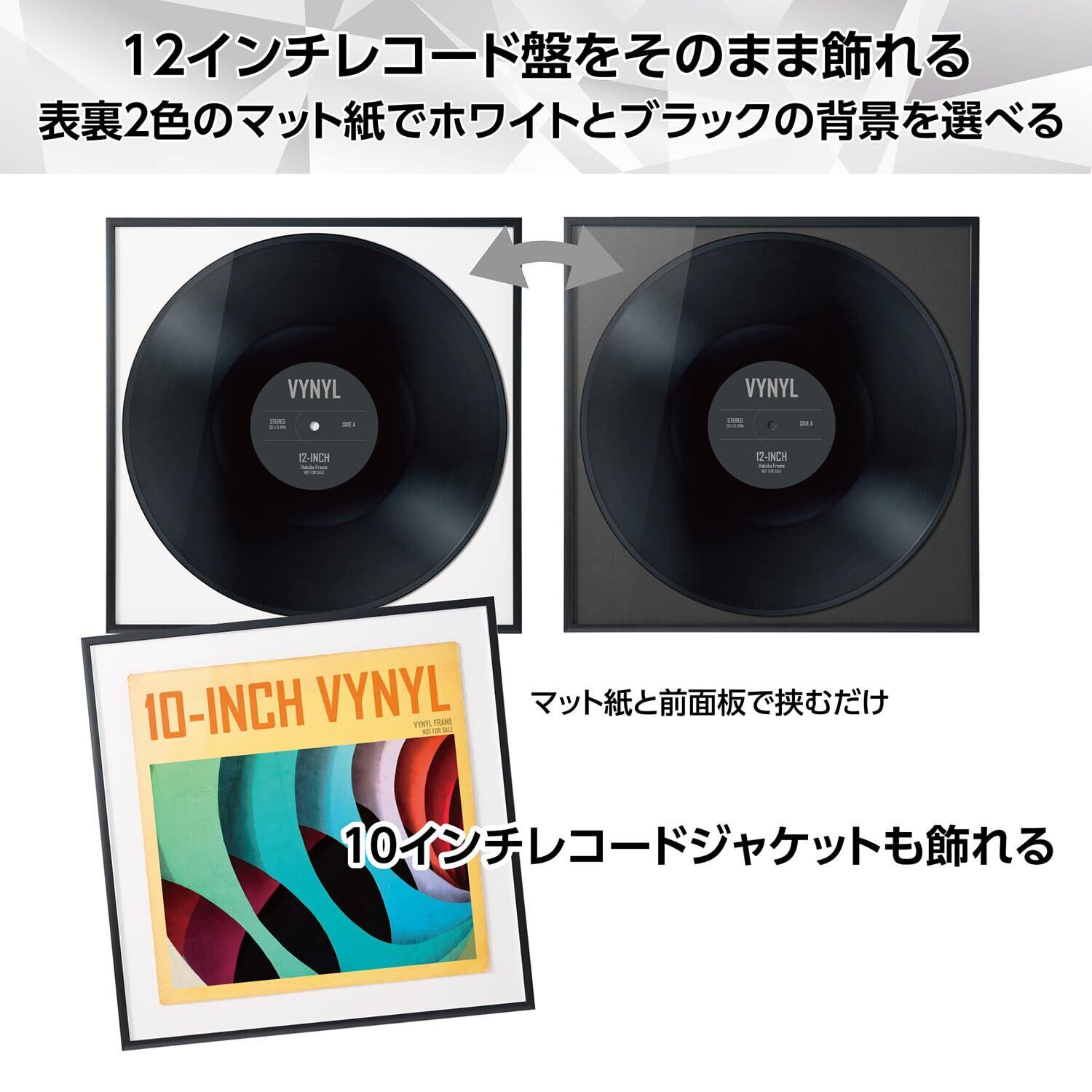 12インチのLPレコードジャケット(310~315mm角)がピッタリと収まり、写真や絵画のようにお部屋に飾れる薄枠でシンプルなインテリアフレームです。 付属の背景マット紙を使用して、レコード盤をそのまま飾ったり、10インチレコードジャケットを飾ることも可能。