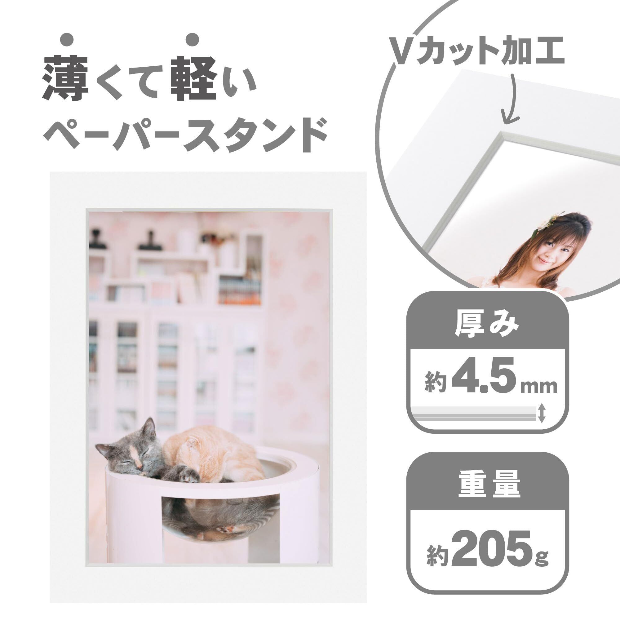 薄くて軽い紙製フレーム。 縦置きにも横置きにも使えるスタンド付きで、壁掛けにも対応。 写真やイラストはもちろん、メニュー表など幅広い用途に使えます。