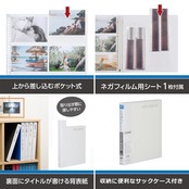 【仕様】30穴バインダー式アルバム、【表紙サイズ】約W310×H320×D32mm、【ポケットサイズ】Lサイズ用シート 約W130×H90mm、【シート数】Lサイズ用10シート、ネガフィルム用1シート
