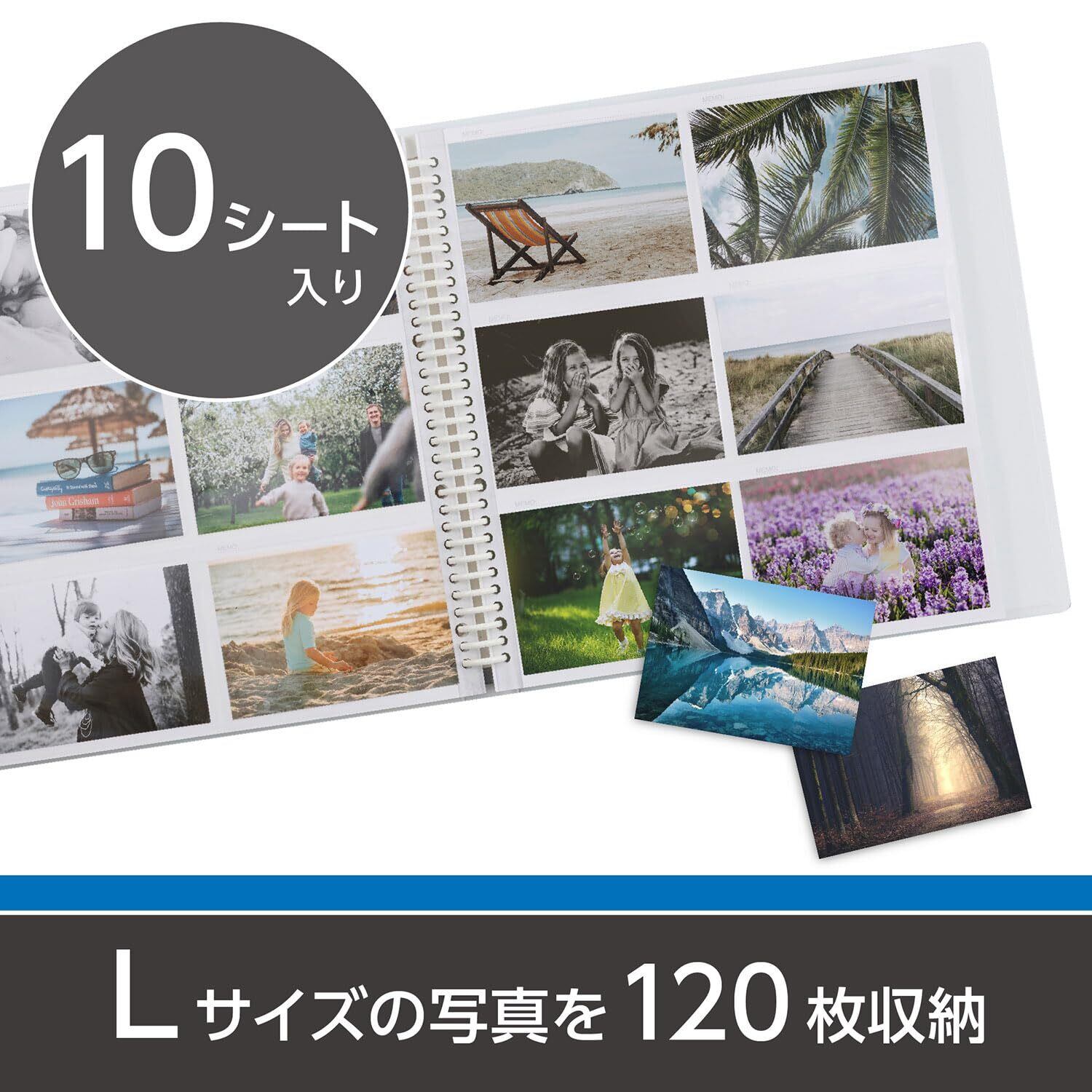 Lサイズのお写真の保管にお使いいただけます。Lサイズ用台紙10シート入り(1シートあたり、両面合わせて12枚の写真を収納できます)。