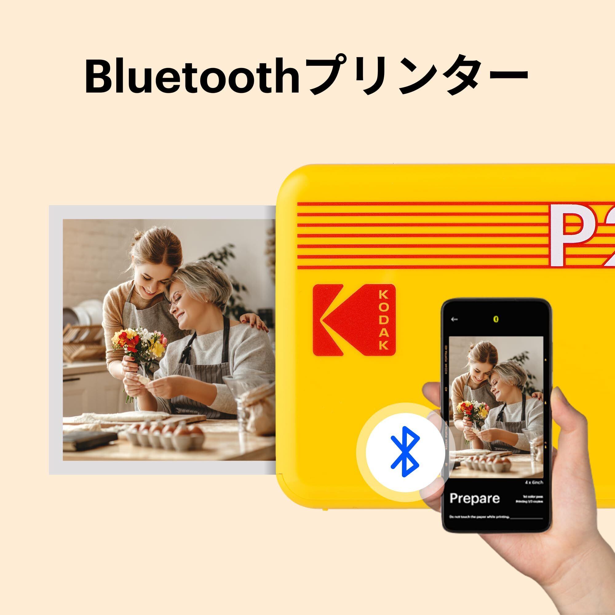コダックKodak Mini 2 レトロ 4PASS スマホプリンター/インスタントプリンター/チェキプリンター(5.3x8.6cm)+プリンター本体8枚入り+60枚バンドル、イエロー