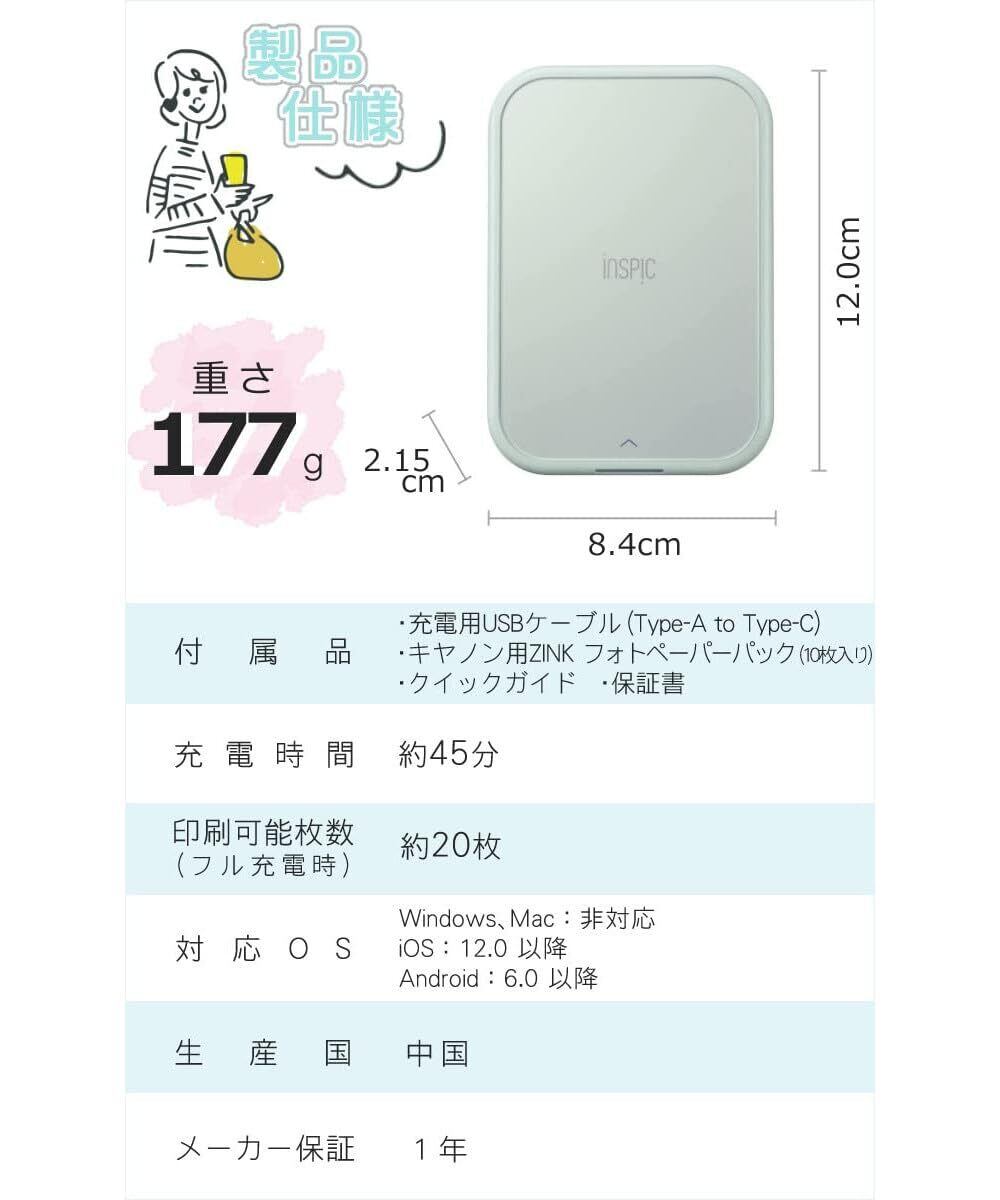 【セット構成1】キヤノン Canon ミニフォトプリンター inspic PV-223