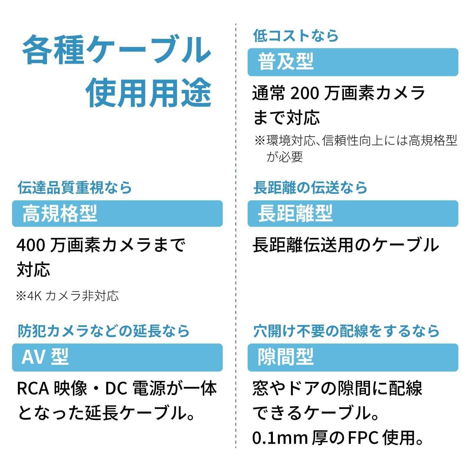 【電源・信号一体型】防犯カメラの使用にあたり必要な電源供給と、映像信号の伝送を同時に行うことが出来るため、簡単な接続でカメラの延長が行えます。